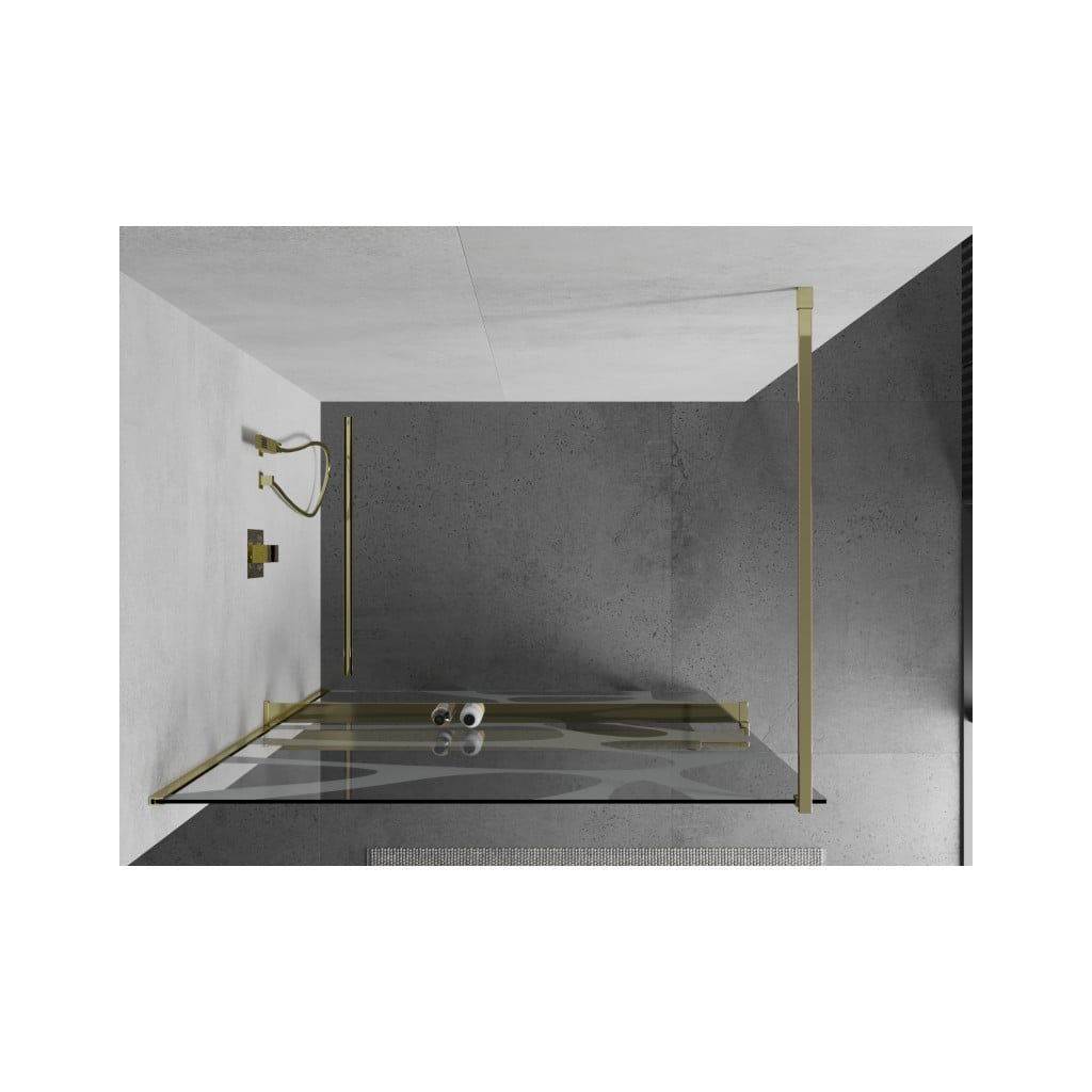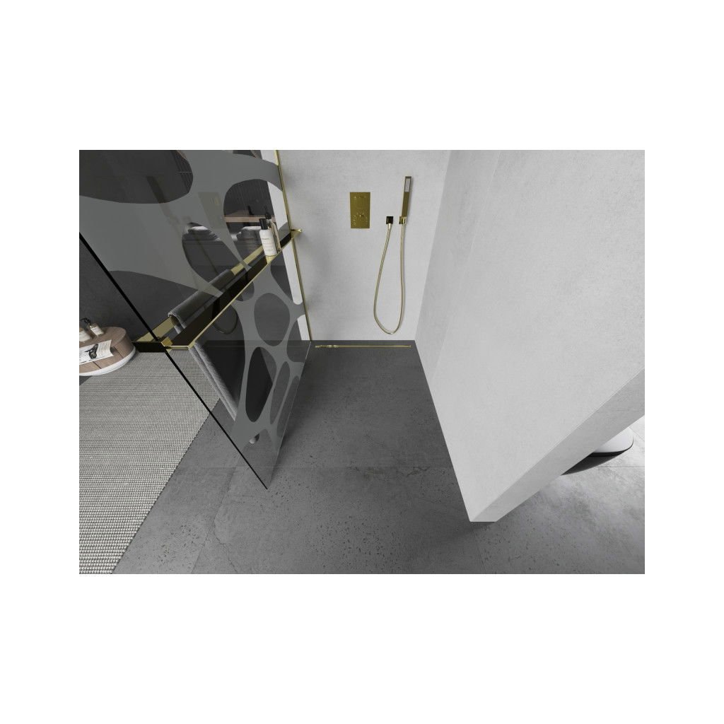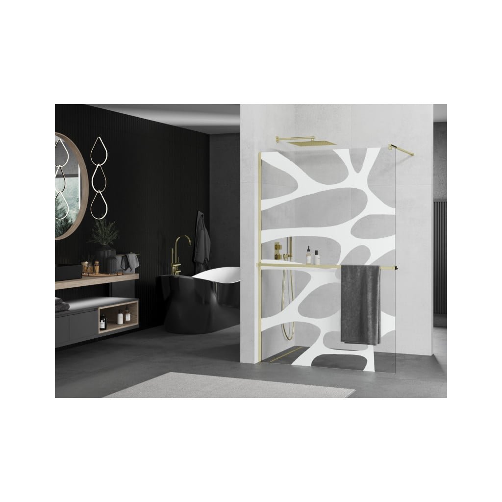 Mexen Kioto +, zuhany paraván polccal és törölközőtartóval 80 x 200 cm, 8mm átlátszó üvegmintás fehér, arany profil 800-080-121-50-97