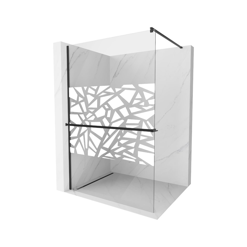 Mexen Kioto +, zuhany paraván polccal és törölközőtartóval 80 x 200 cm, 8mm üveg átlátszó üvegmintás fehér, fekete profil, 800-080-121-70-85