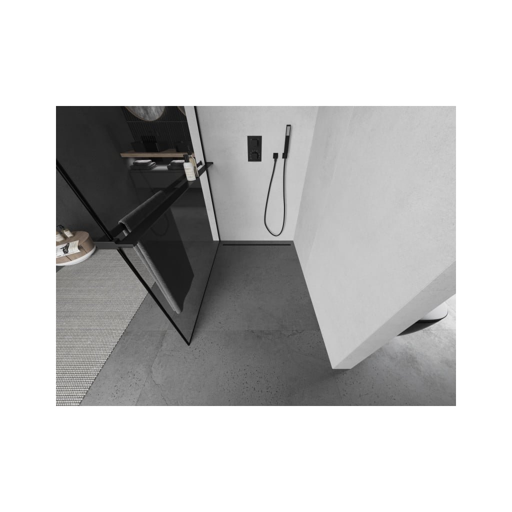 Mexen Kioto +, zuhany paraván polccal és törölközőtartóval 80 x 200 cm, 8mm üveg átlátszó üvegmintás fekete keret, fekete profil, 800-080-121-70-70