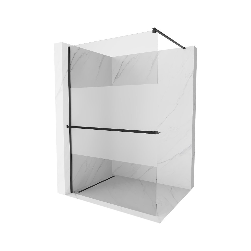 Mexen Kioto +, zuhany paraván polccal és törülközőtartóval 120 x 200 cm, 8mm átlátszó jegesedés üveg, fekete profil, 800-120-121-70-35