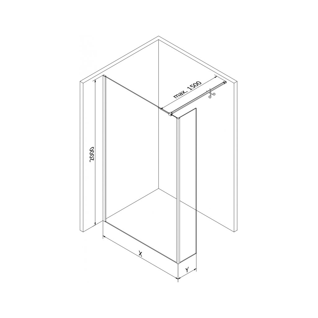 - Méretek: fal X - 90 cm, fal Y - 30 cm
