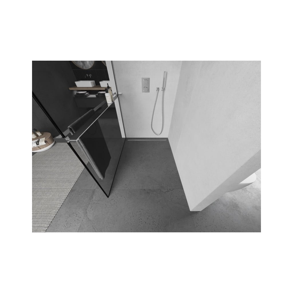 A zuhanykabin univerzális és népszerű megoldás minden fürdőszobába. A paraván ajtó nélküli, és egy rudat tartalmaz, amellyel a függöny felakasztható. A Kioto sorozat képernyője 8 mm-es edzett biztonsági üvegből készül, 200 cm magas. A felszerelés univerzális a zuhanytálcára vagy a csempére, jobbra vagy balra. A T-csatlakozó (nem tartozék) segítségével tetszőleges méretű stabilizáló rudak csatlakoztatása és nyitott zuhanykabin kialakítása lehetséges (a Kioto zuhanyparavánok 30-160 cm-es hosszban kaphatók). Minimális bejárati szélességként ebben az esetben javasoljuk, hogy legalább 50 cm-t hagyjon. A kínált zuhanyparaván egy dizájn fémpolcot tartalmaz a törölközők kívülről történő felakasztására és a zuhanyprogram elhelyezésére a kényelmes zuhany érdekében.
