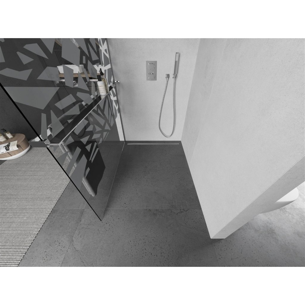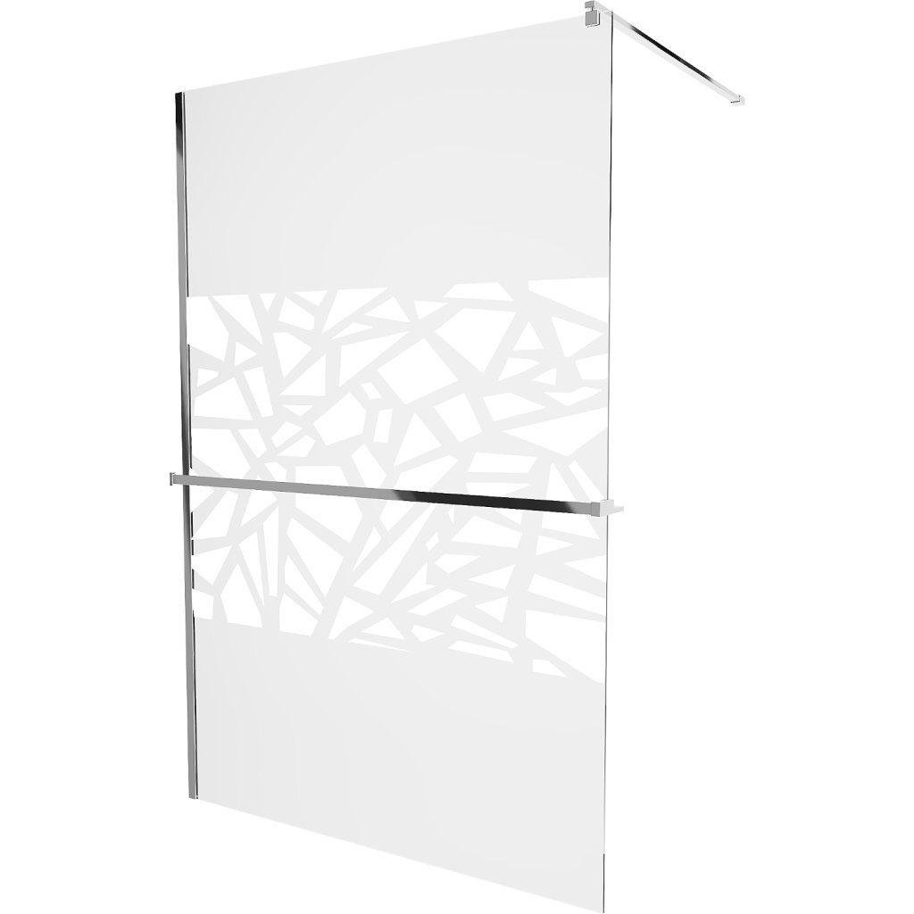 Mexen Kioto +, zuhanyparaván polccal és törölközőtartóval 140 x 200 cm, 8mm átlátszó üvegmintás fehér, króm profil, 800-140-121-01-85