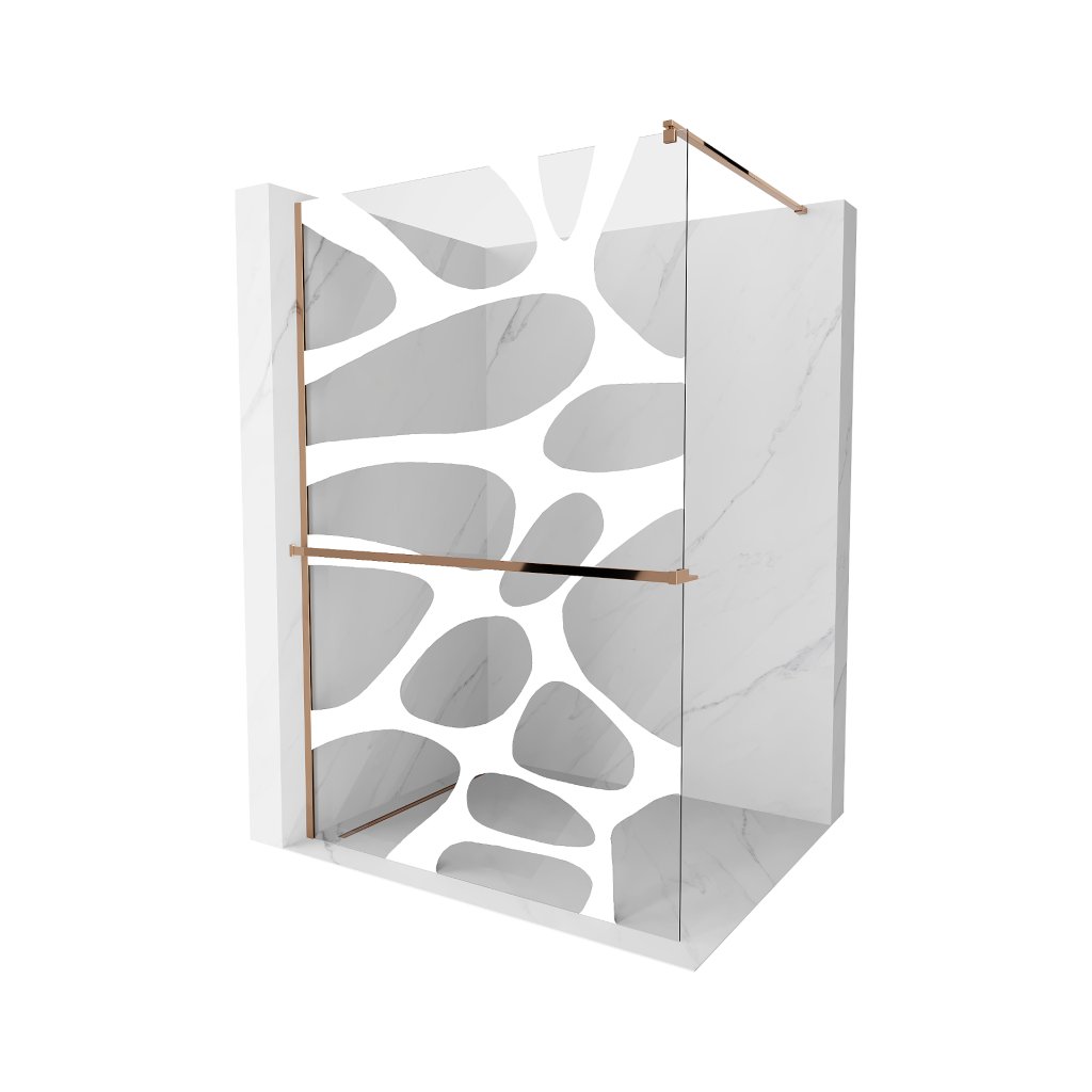 Mexen Kioto +, zuhanyparaván polccal és törölközőtartóval 70 x 200 cm, 8mm átlátszó üvegmintás fehér, rózsa arany profil, 800-070-121-60-97