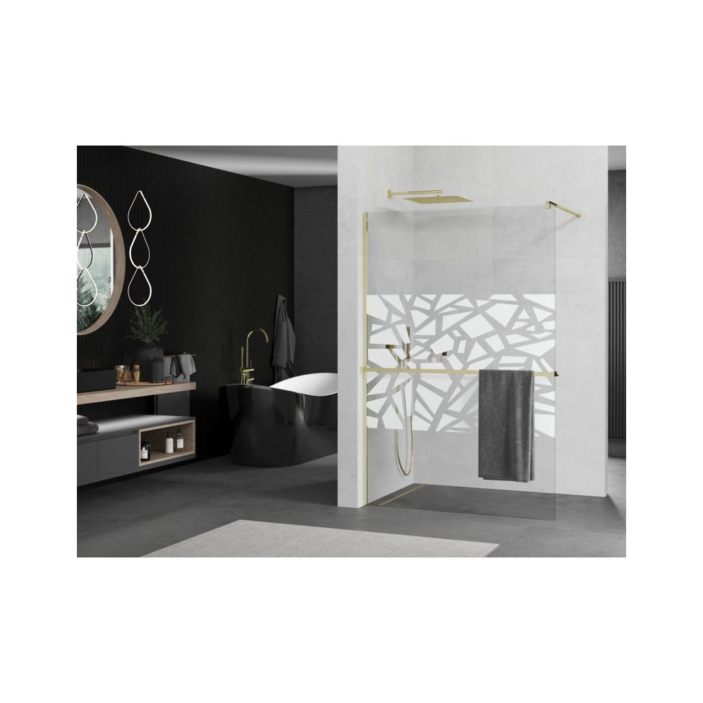 Mexen Kioto +, zuhanyparaván polccal és törölközőtartóval 80 x 200 cm, 8mm átlátszó üvegmintás fehér, arany profil 800-080-121-50-85