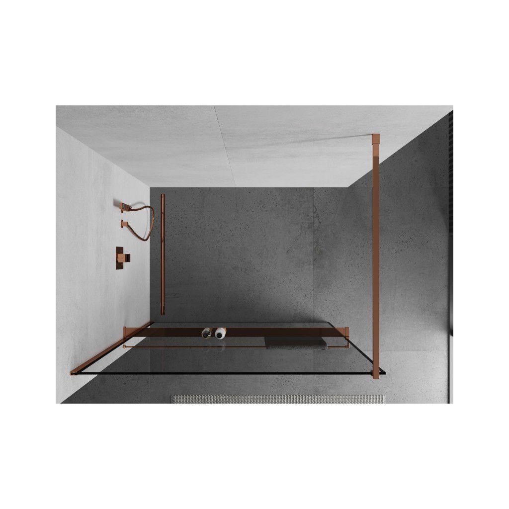 Mexen Kioto +, zuhanyparaván polccal és törölközőtartóval 90 x 200 cm, 8mm átlátszó üvegmintás fekete, rózsa arany profil, 800-090-121-60-70