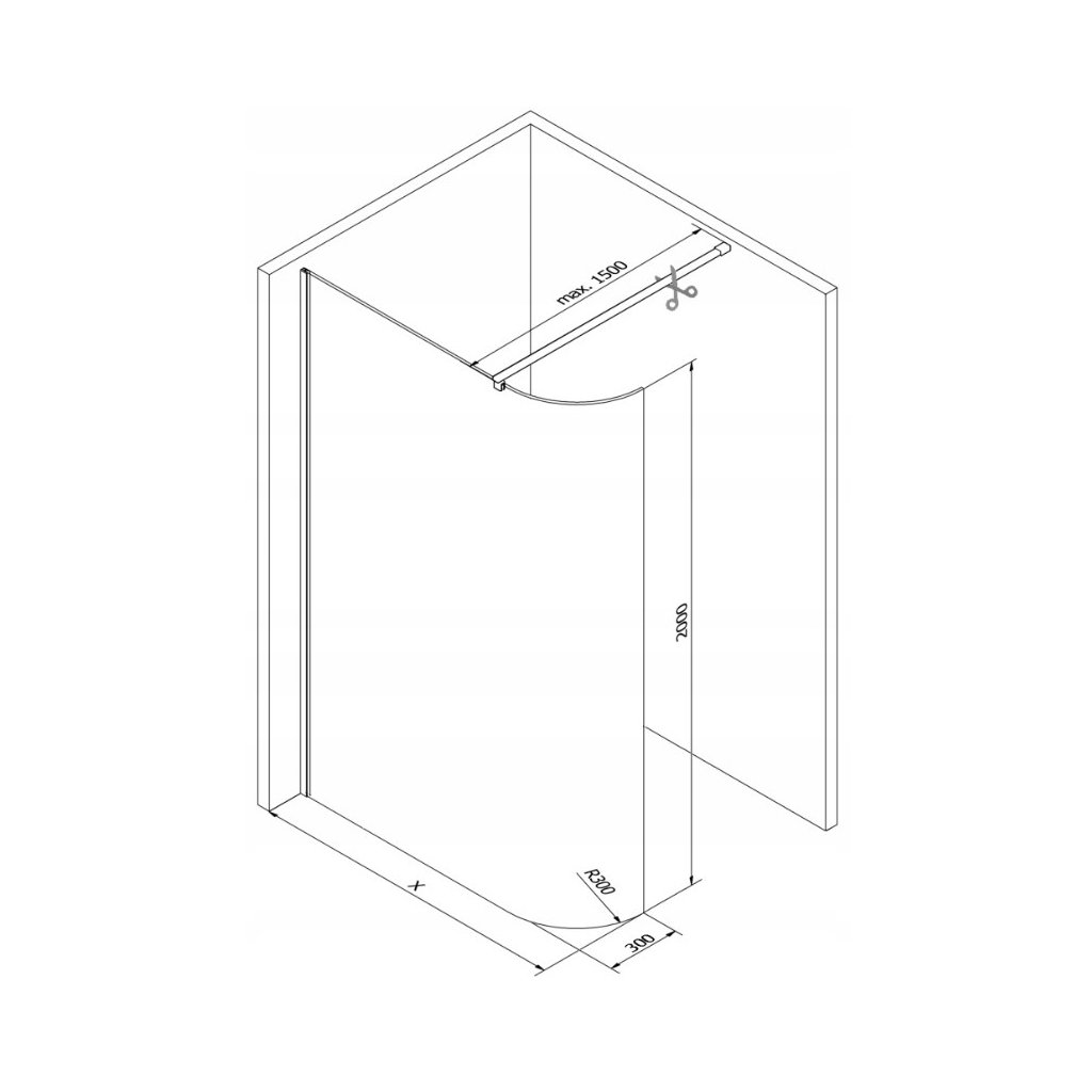 Mexen Kioto lekerekített zuhanyparaván Walk-In 160x200 cm, 8mm átlátszó üveg, 800-160-000-00-06