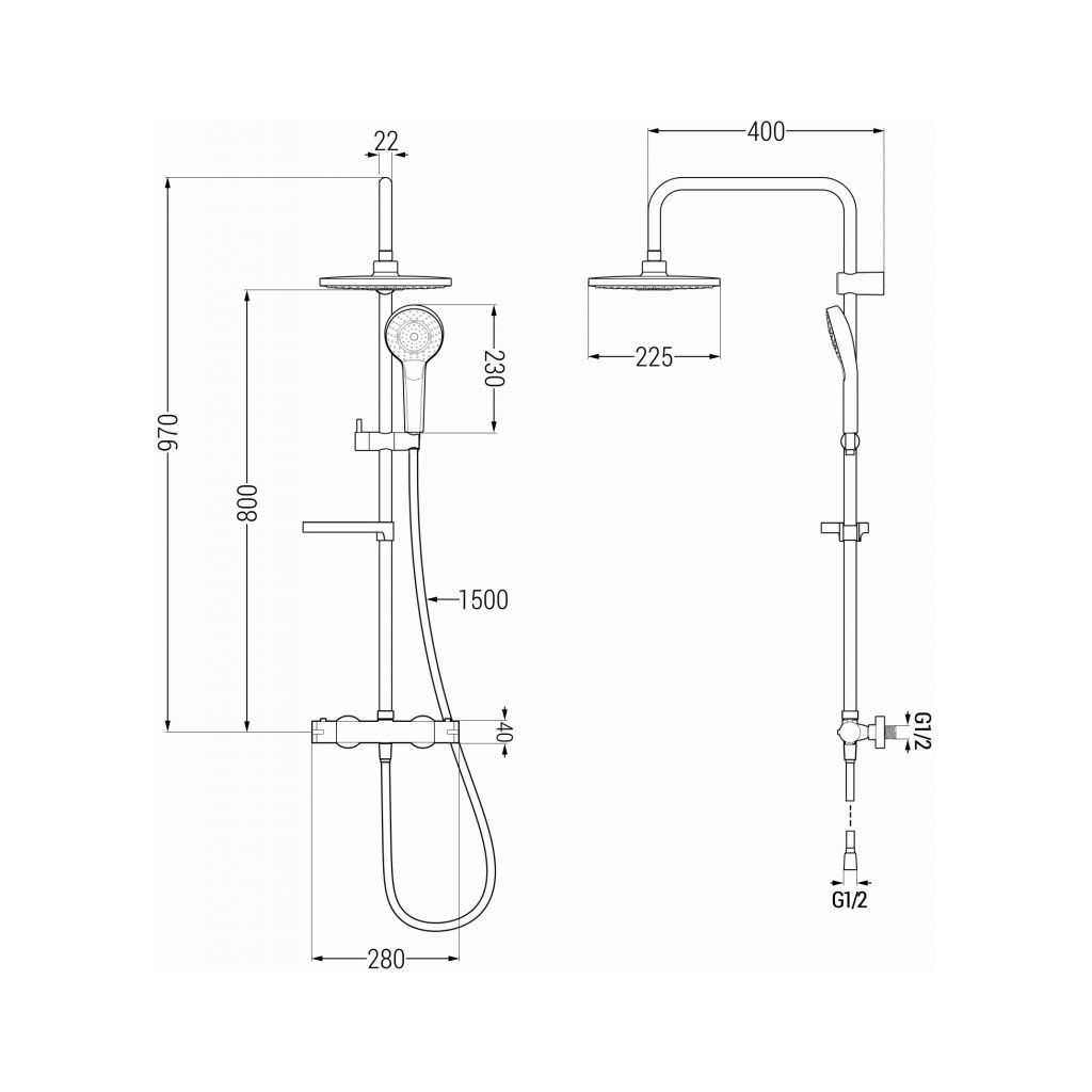 - Csatlakozások: 1/2 "(alsó - kézi zuhany) + 3/4" (felső a zuhanyoszlophoz)