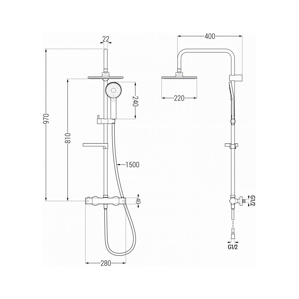 - Csatlakozások: 1/2 "(alsó - kézi zuhany) + 3/4" (felső a zuhanyoszlophoz)