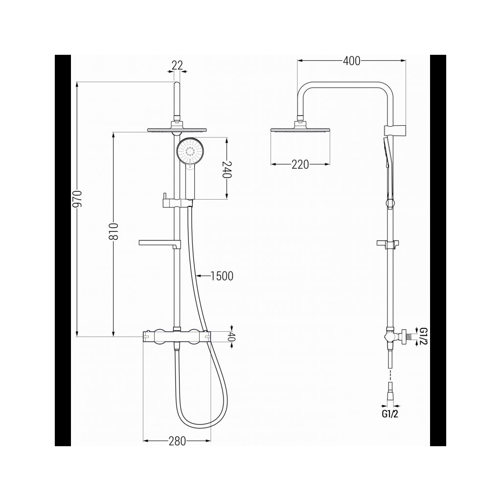 - Csatlakozások: 1/2 "(alsó - kézi zuhany) + 3/4" (felső a zuhanyoszlophoz)