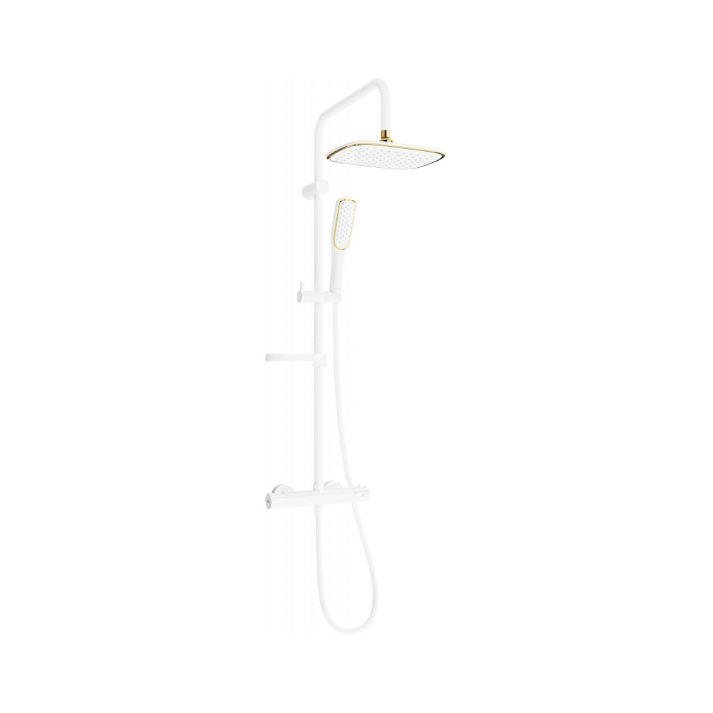 Mexen KX49 zuhanykészlet esőzuhannyal és termosztatikus csapteleppel, fehér / arany - 771504091-25