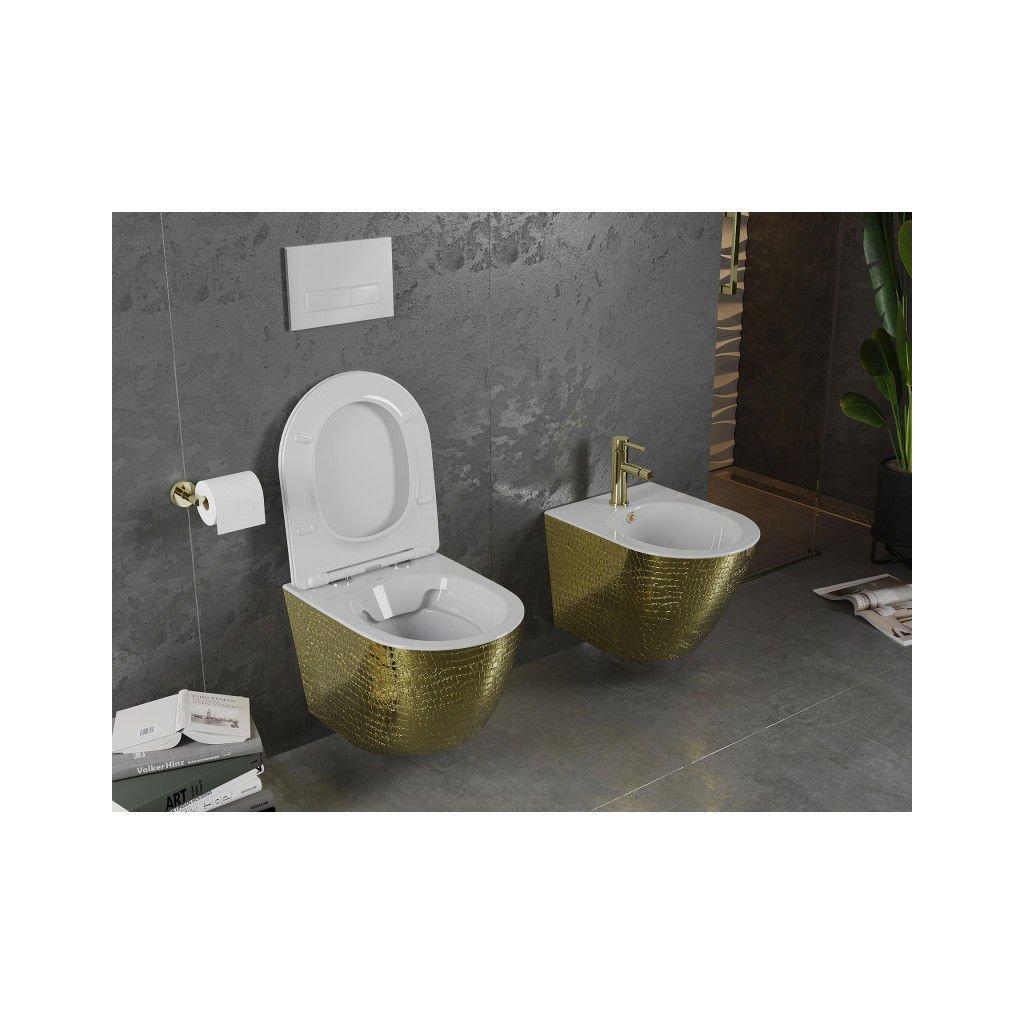 Mexen Lena, függő WC csésze 480x360x355 mm, fehér - arany mintás, 30224008