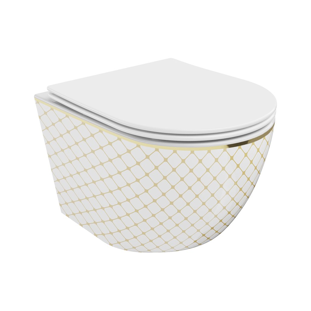 Mexen Lena, függő WC csésze 480x360x355 mm, fehér - arany mintás, 30224009