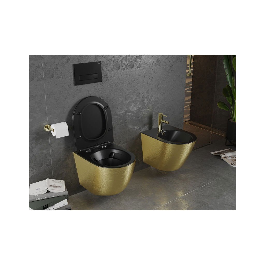 Mexen Lena, függő wc csésze 480x360x355 mm, lassan süllyedő ülőfelülettel, fekete matt - arany mintás, 30224077