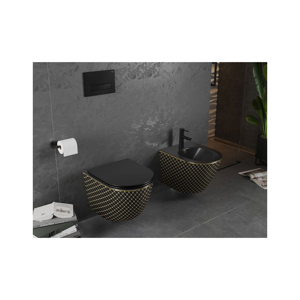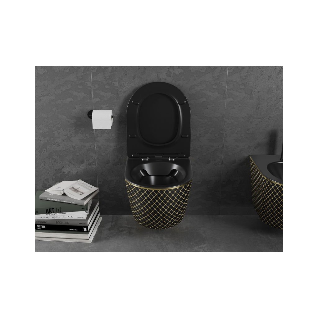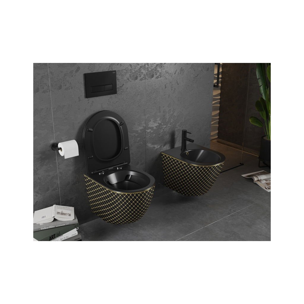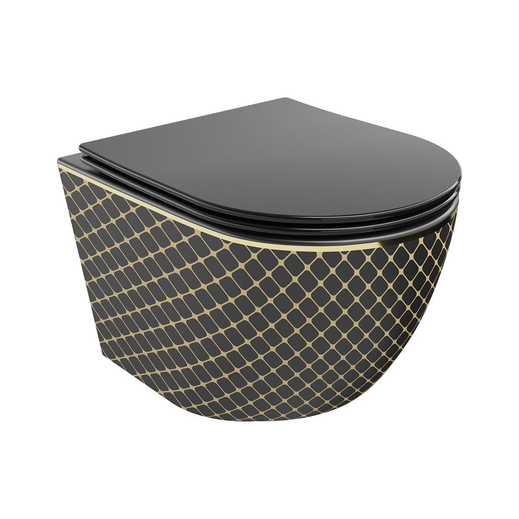 Mexen Lena, függő wc csésze 480x360x355 mm, lassan süllyedő ülőfelülettel, fekete matt - arany mintás, 30224079