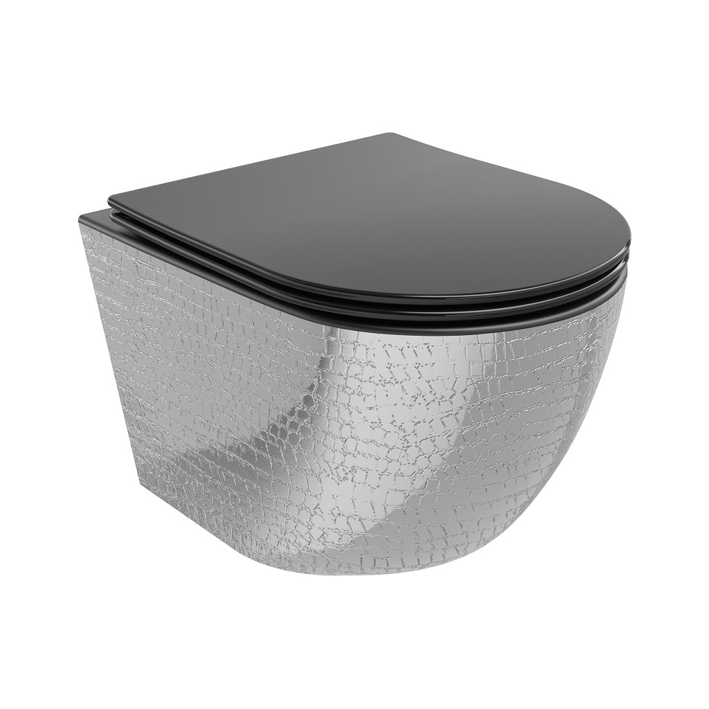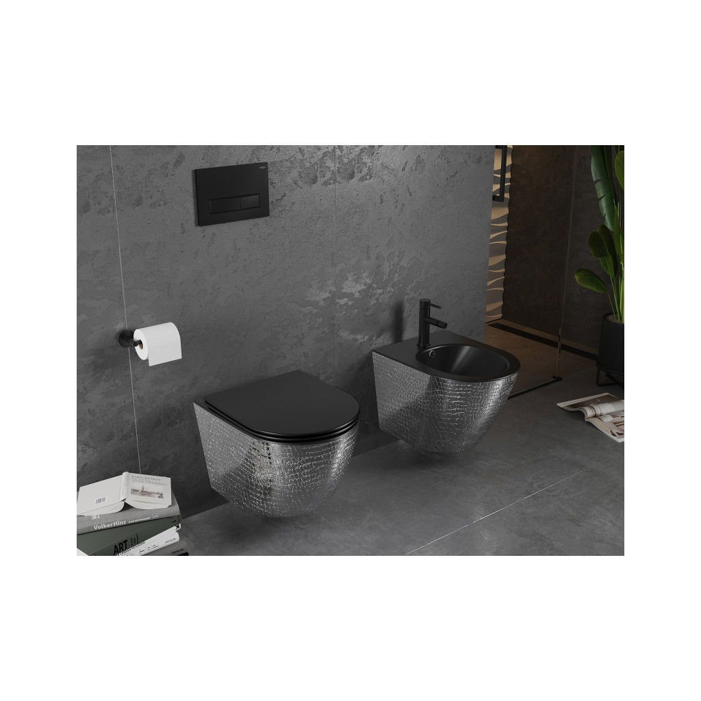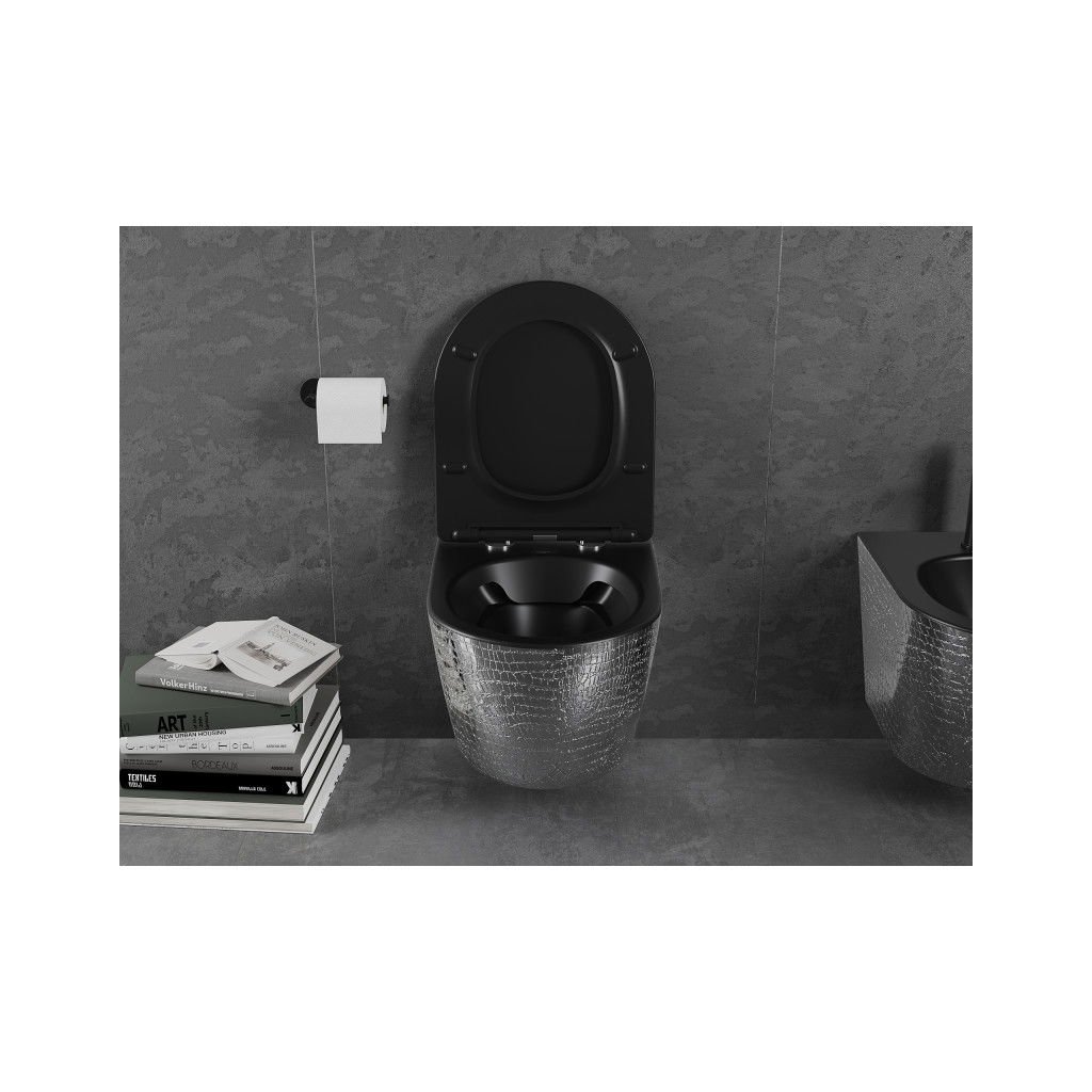 Mexen Lena, függő wc csésze 480x360x355 mm lassan süllyedő ülőfelülettel, matt fekete - ezüst mintás, 30224072