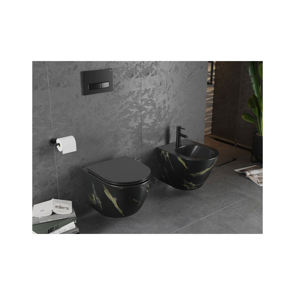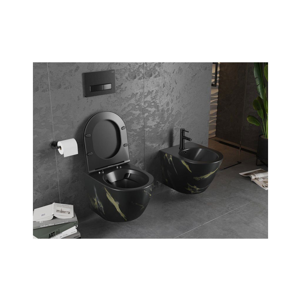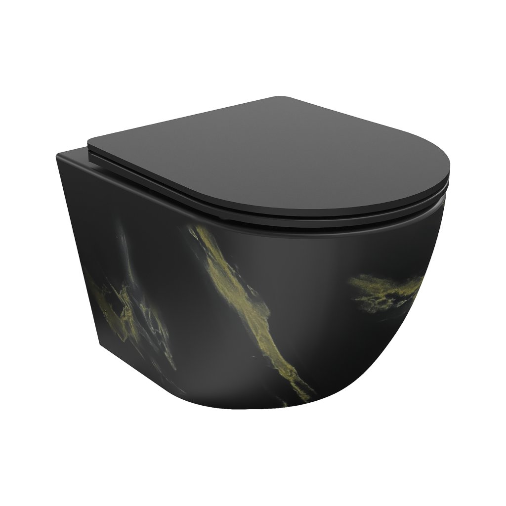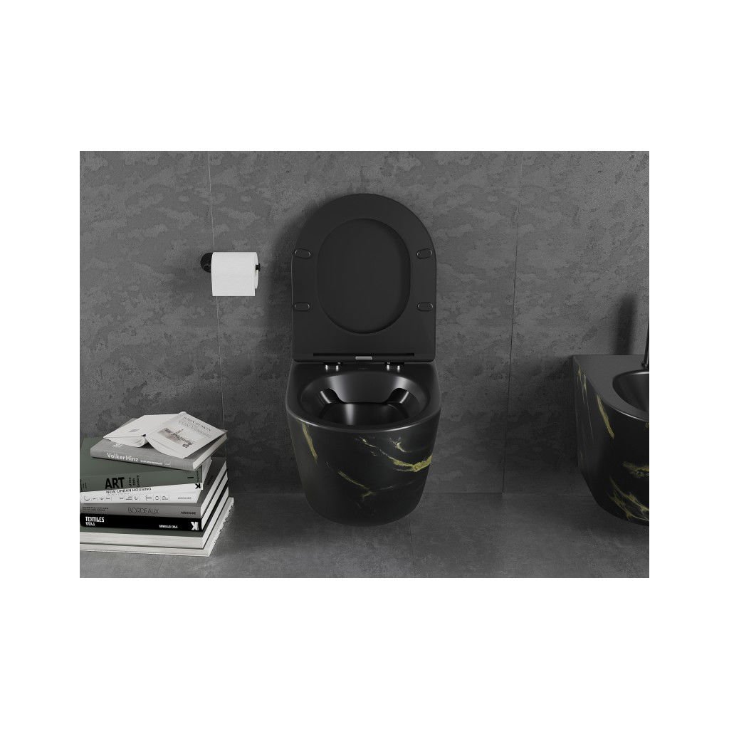 Mexen Lena, Perem nélküli fali WC csésze duroplaszt ülőkével, lassan záródó, fekete kőutánzattal, 30224098