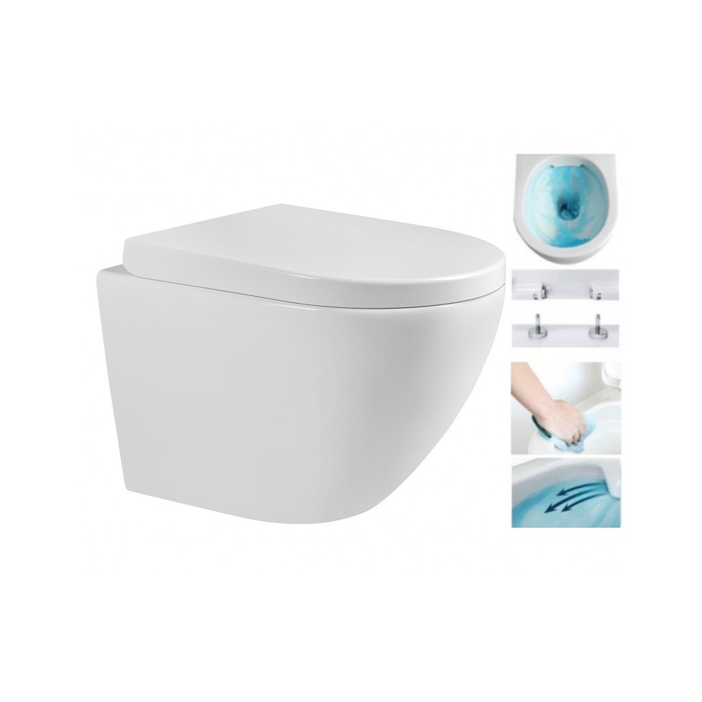 Mexen LENA Perem nélküli, falra akasztható wc csésze lassan süllyedő ülőfelülettel, 48 x 36 cm, fehér, 30221000