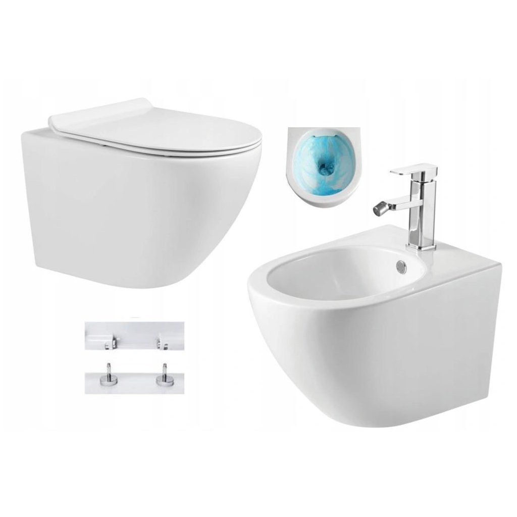 Mexen LENA Perem nélküli, falra akasztható WC csésze ülőkés + bidé, fehér, 30224000 + 35224800