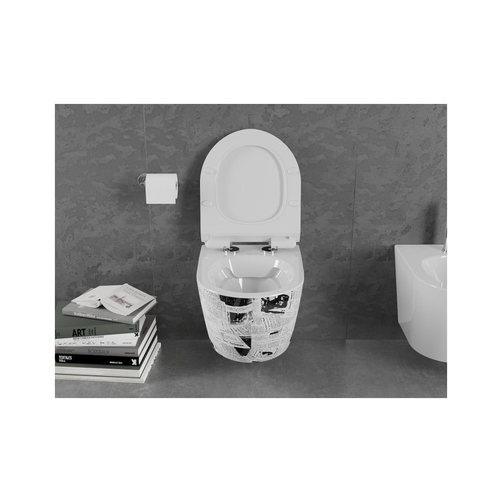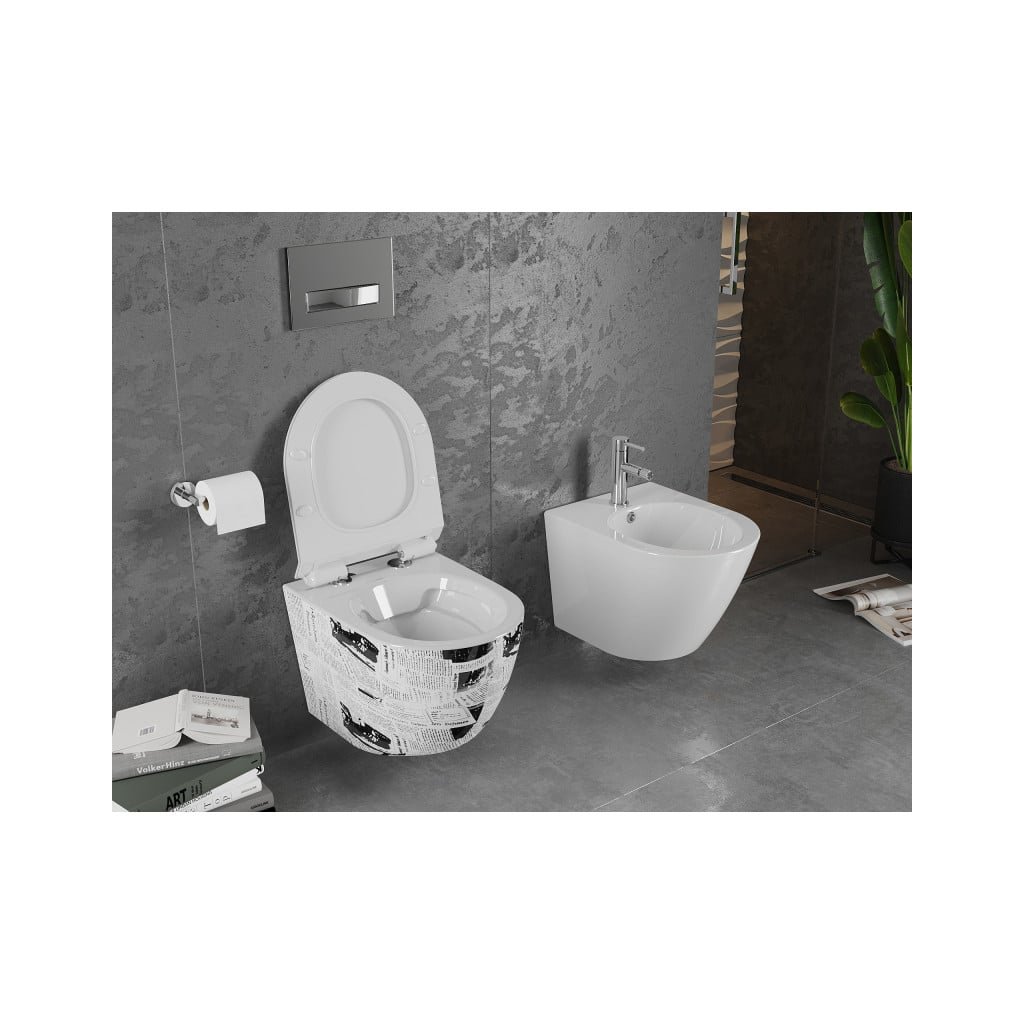 Mexen LENA Perem nélküli, függő WC csésze, lassan süllyedő ülőkés SLIM, 48 x 36 cm, gazette minta, 30224099