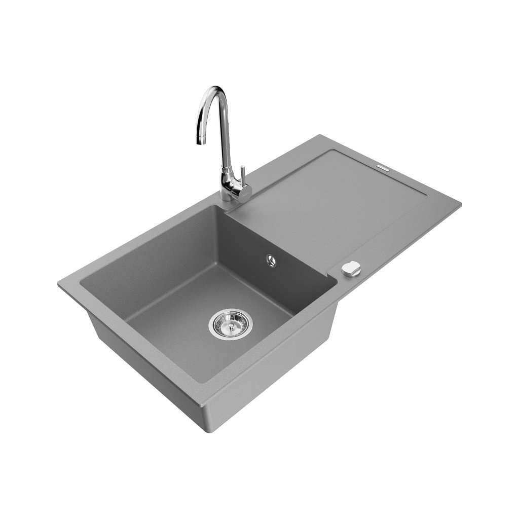 Mexen Leo, 1 kamrás gránit mosogató csepptálcával 90x50 cm konyhai csapteleppel Telma, szürke, 6501-71-670200-00