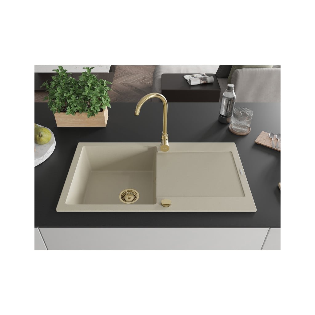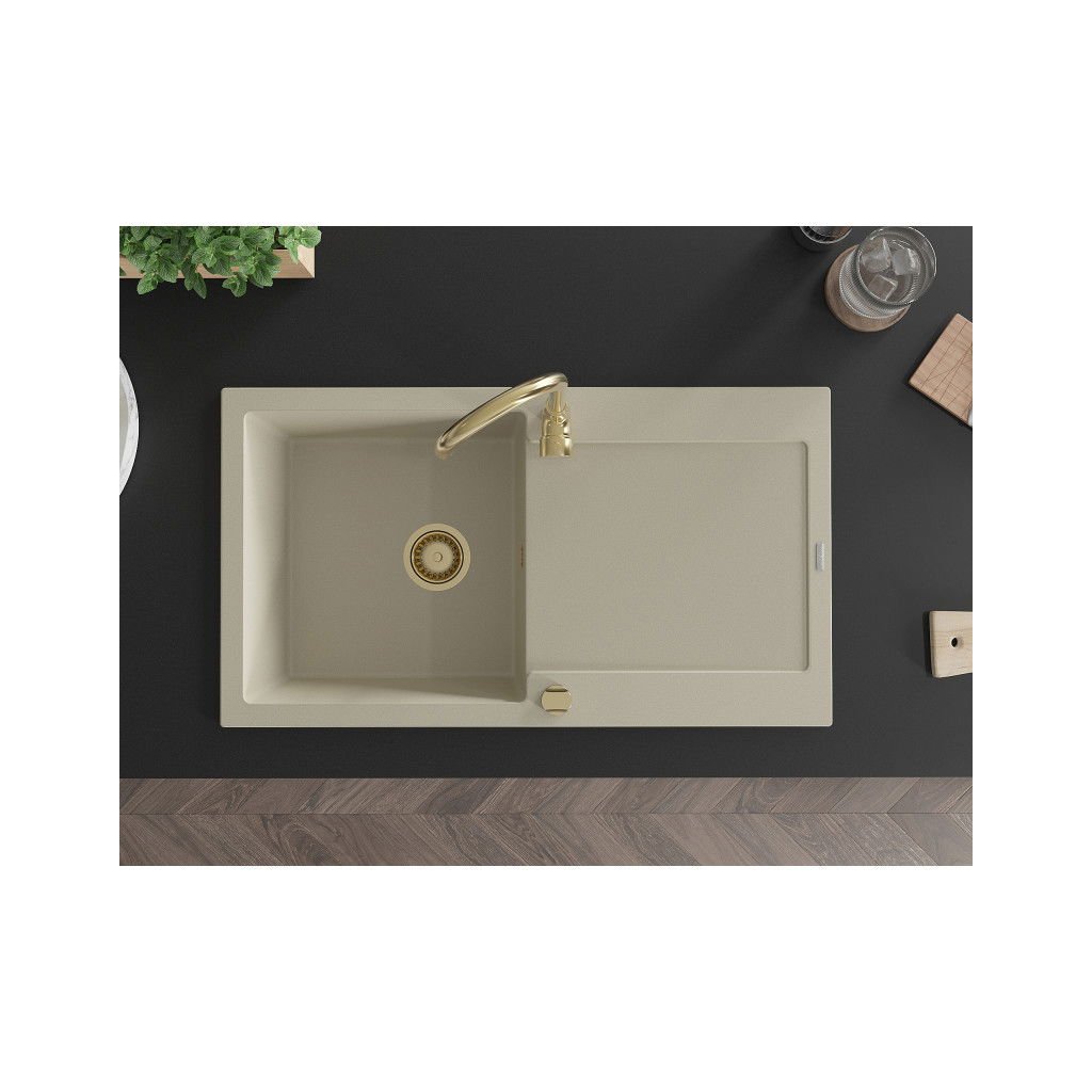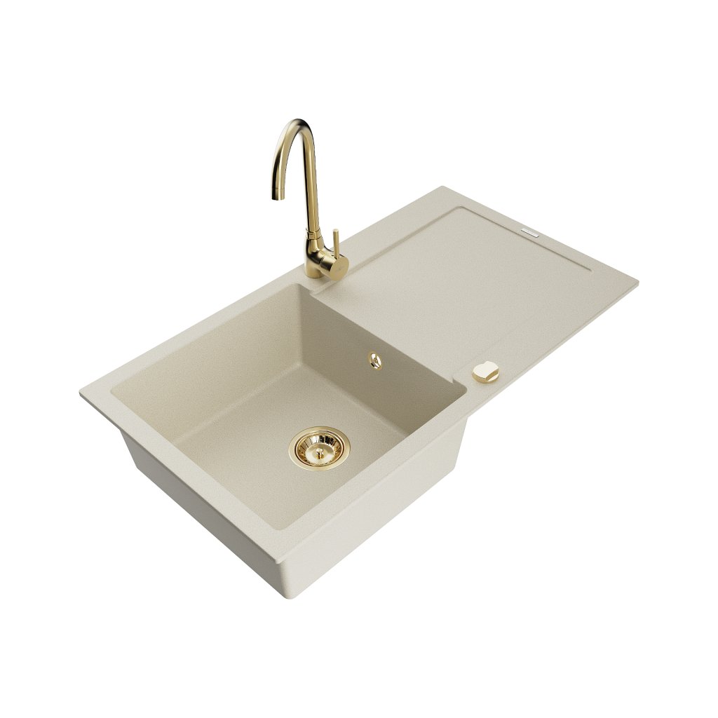 Mexen Leo, gránit mosogató 900x500x190 mm, 1 kamrás és arany Telma csaptelep, bézs, 6501-69-670200-50