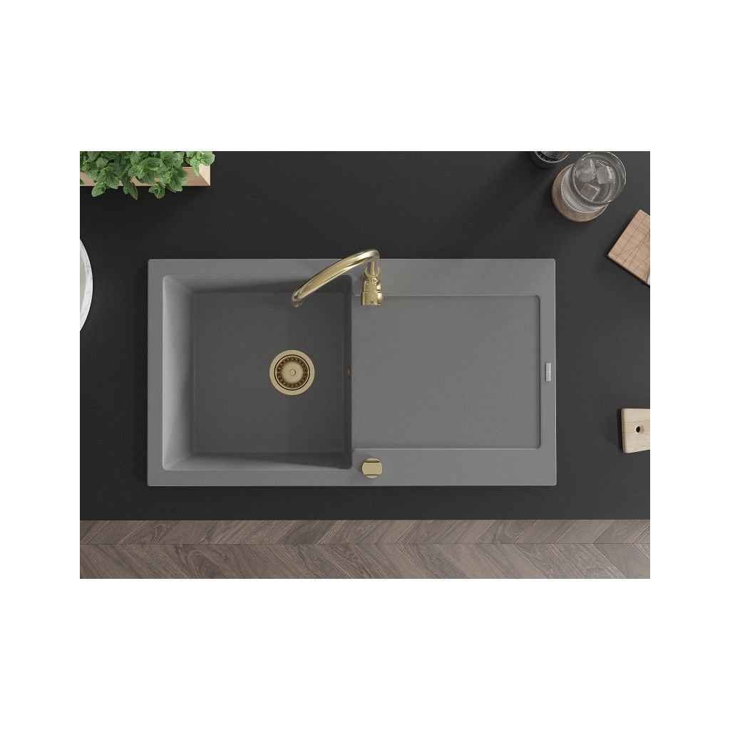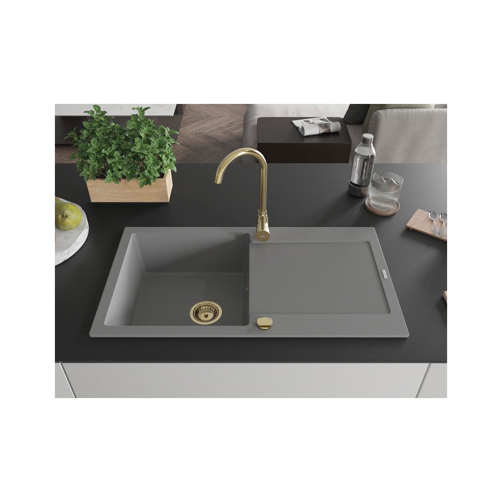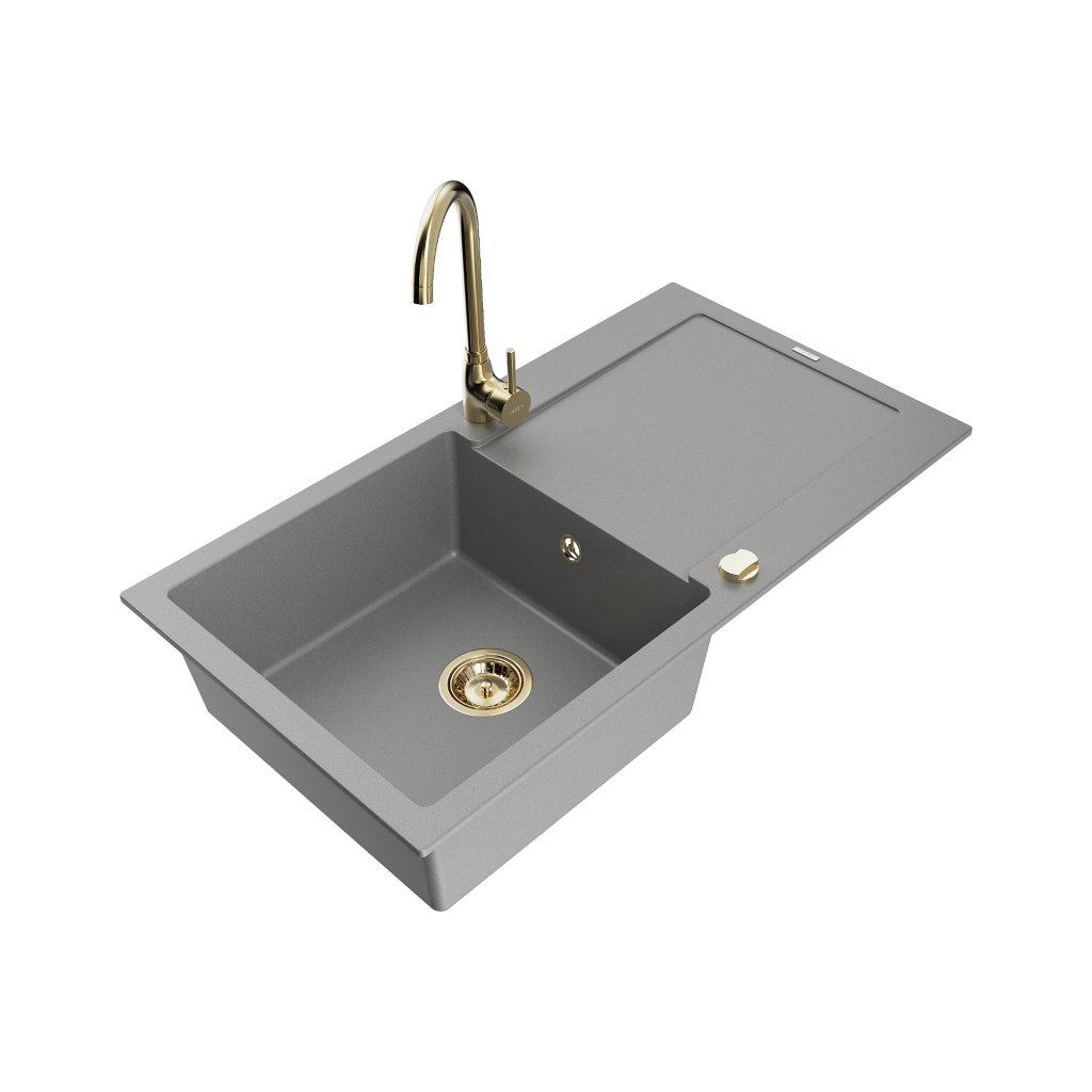 Mexen Leo, gránit mosogató 900x500x190 mm, 1 kamrás és arany Telma csaptelep, szürke, 6501-71-670200-50