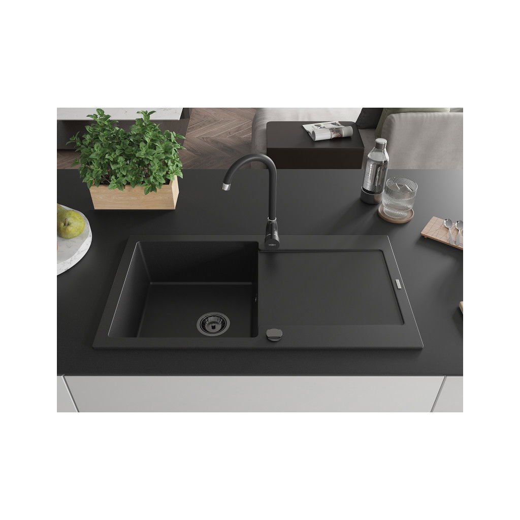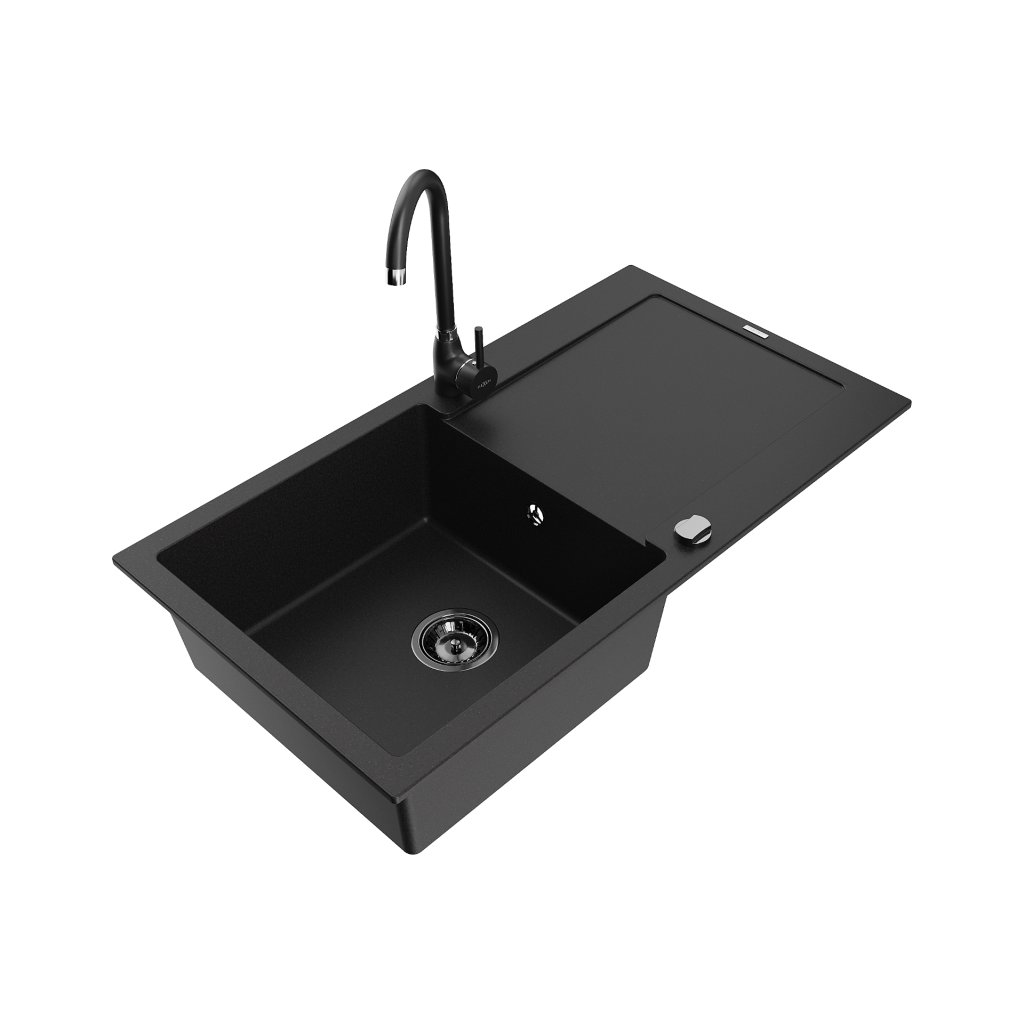Mexen Leo, gránit mosogató 900x500x190 mm, 1 kamrás és fekete Telma csaptelep, fekete, 6501-77-670200-70-B