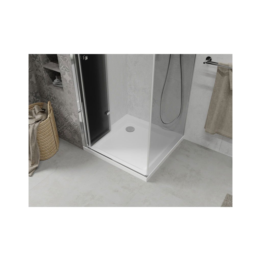 Mexen Lima, zuhanykabin 90 (ajtó) x 90 (fal) cm, 6mm szürke üveg, króm profil + SLIM zuhanytálca 5cm króm szifonnal, 856-090-090-01-40-4010