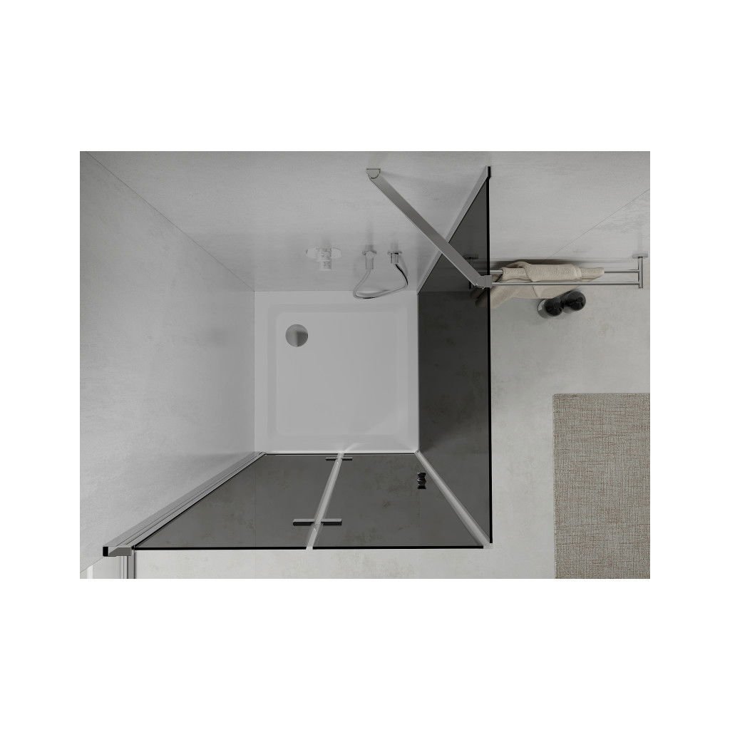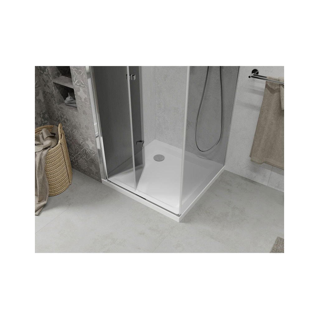 Mexen Lima, zuhanykabin összecsukható ajtóval 100 (ajtó) x 100 (fali) cm, 6mm szürke üveg, króm profil + vékony zuhanytálca fehér + króm szifon, 856-100-100-01-40-4010