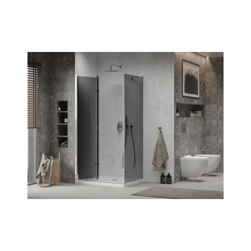 Mexen Lima, zuhanykabin összecsukható ajtóval 100 (ajtó) x 70 (fali) cm, 6mm szürke üveg, króm profil + vékony zuhanytálca fehér + króm szifon, 856-100-070-01-40-4010