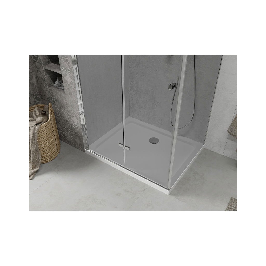 Mexen Lima, zuhanykabin összecsukható ajtóval 100 (ajtó) x 80 (fali) cm, 6 mm-es szürke üveg, króm profil + vékony zuhanytálca fehér + króm szifon, 856-100-080-01-40-4010