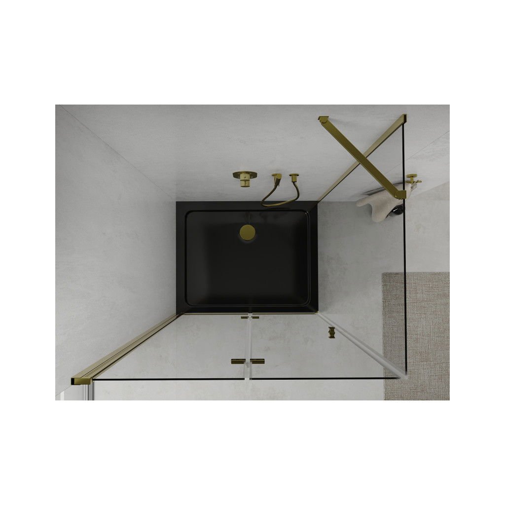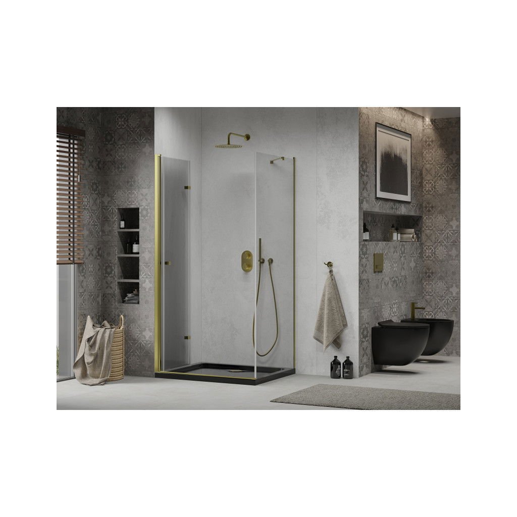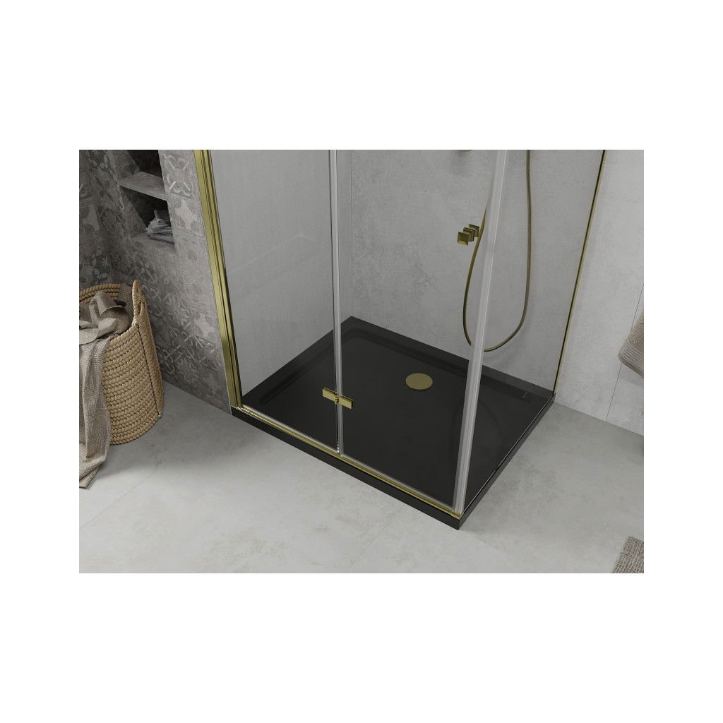 Mexen Lima, zuhanykabin összecsukható ajtóval 100 (ajtó) x 80 (fal) cm, 6mm átlátszó üveg, króm profil + vékony zuhanytálca fekete + arany szifon, 856-100-080-50-00-4070G