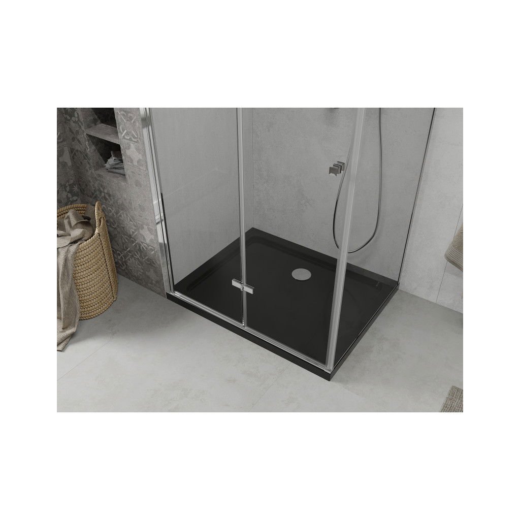 Mexen Lima, zuhanykabin összecsukható ajtóval 120 (ajtó) x 90 (fali) cm, 6mm átlátszó üveg, króm profil + vékony zuhanytálca fekete + króm szifon, 856-120-090-01-00-4070