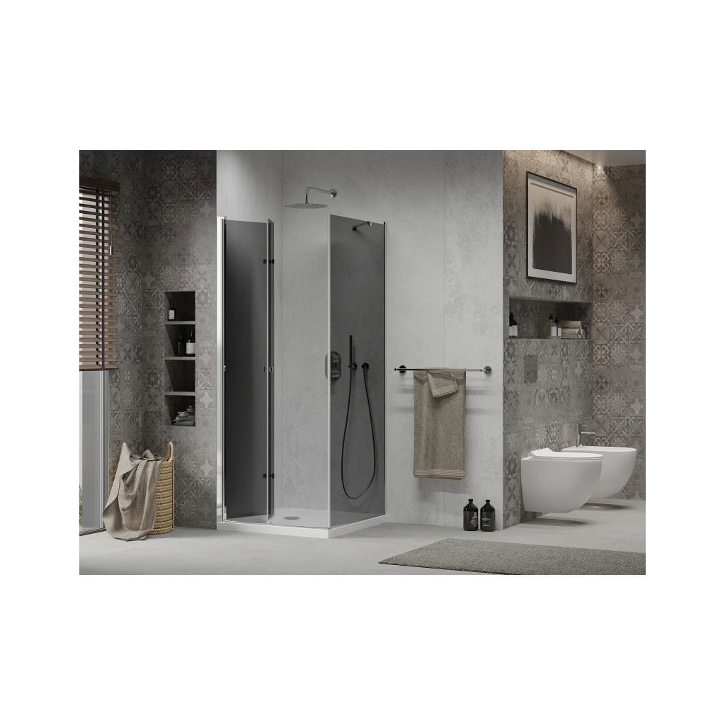Mexen Lima, zuhanykabin összecsukható ajtóval 70 (ajtó) x 70 (fali) cm, 6mm szürke üveg, króm profil + vékony zuhanytálca fehér, 856-070-070-01-40-4010