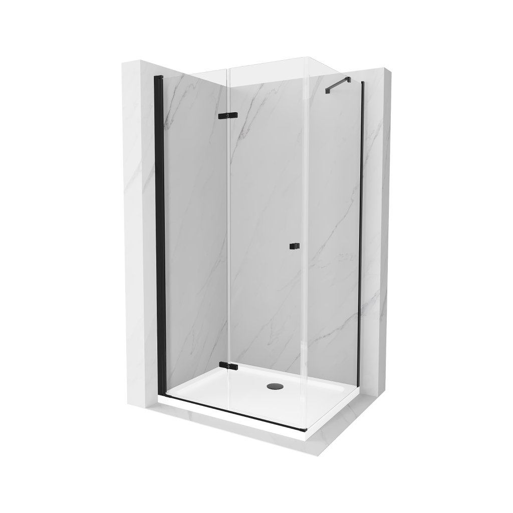 Mexen Lima, zuhanykabin összecsukható ajtóval 70 (ajtó) x 90 (fal) cm, 6mm átlátszó üveg, fekete profil + vékony zuhanytálca fehér fekete szifonnal, 856-070-090-70-00-4010B