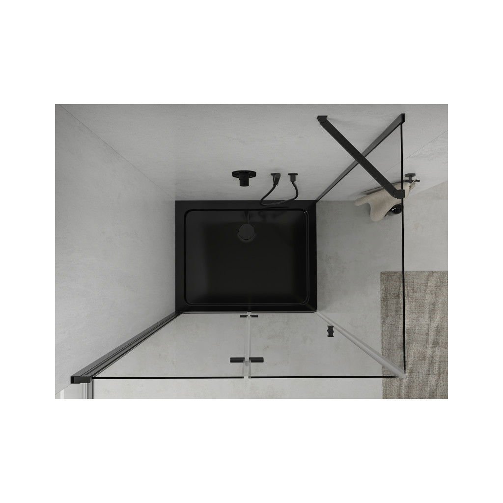 Mexen Lima, zuhanykabin összecsukható ajtóval 80 (ajtó) x 100 (fal) cm, 6mm átlátszó üveg, fekete profil + vékony fekete zuhanytálca fekete szifonnal, 856-080-100-70-00-4070B