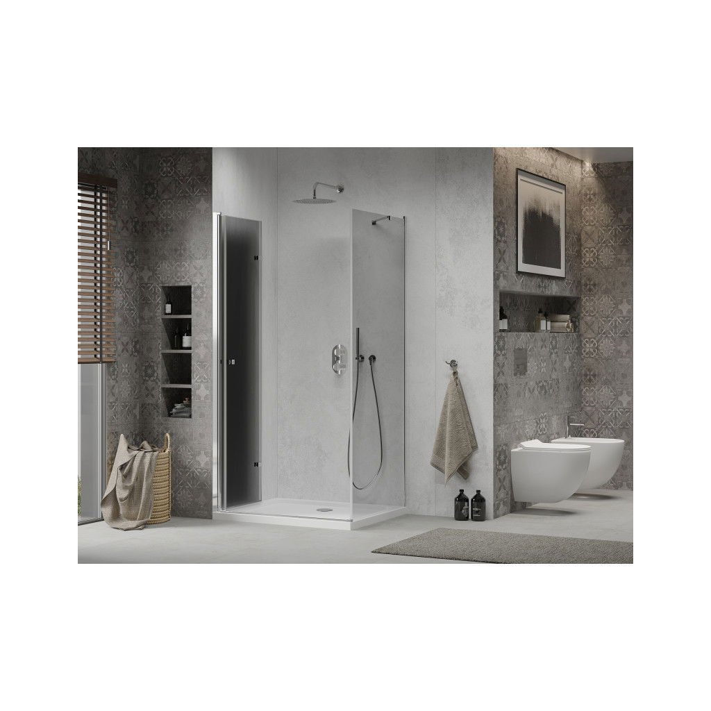 Mexen Lima, zuhanykabin összecsukható ajtóval 80 (ajtó) x 100 (fal) cm, 6mm szürke üveg, króm profil + vékony zuhanytálca fehér + króm szifon, 856-080-100-01-40-4010