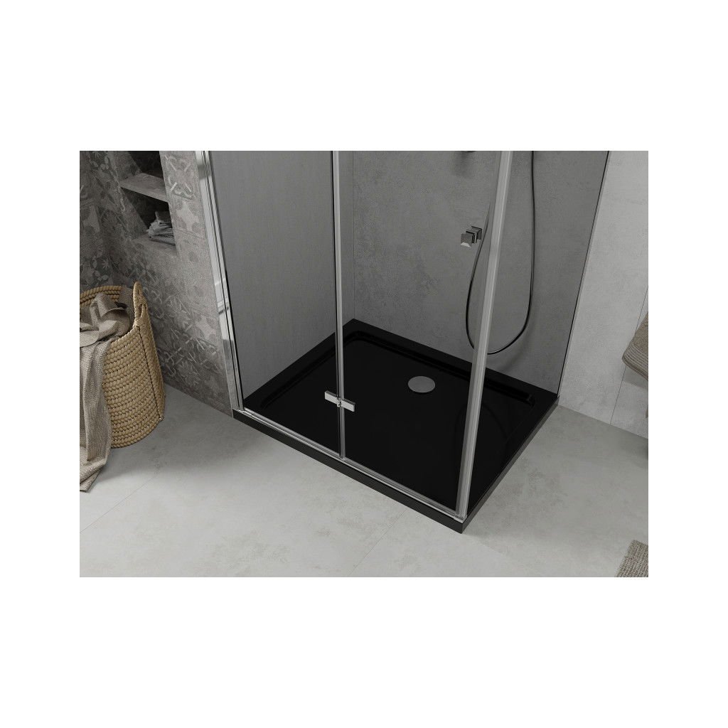 Mexen Lima, zuhanykabin összecsukható ajtóval 80 (ajtó) x 100 (fali) cm, 6mm szürke üveg, króm profil + vékony zuhanytálca fekete + króm szifon, 856-080-100-01-40-4070
