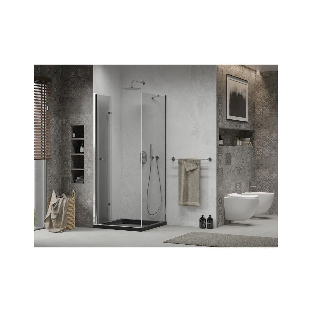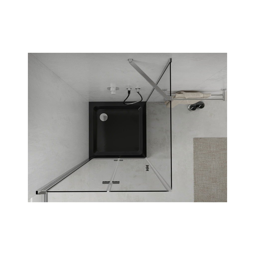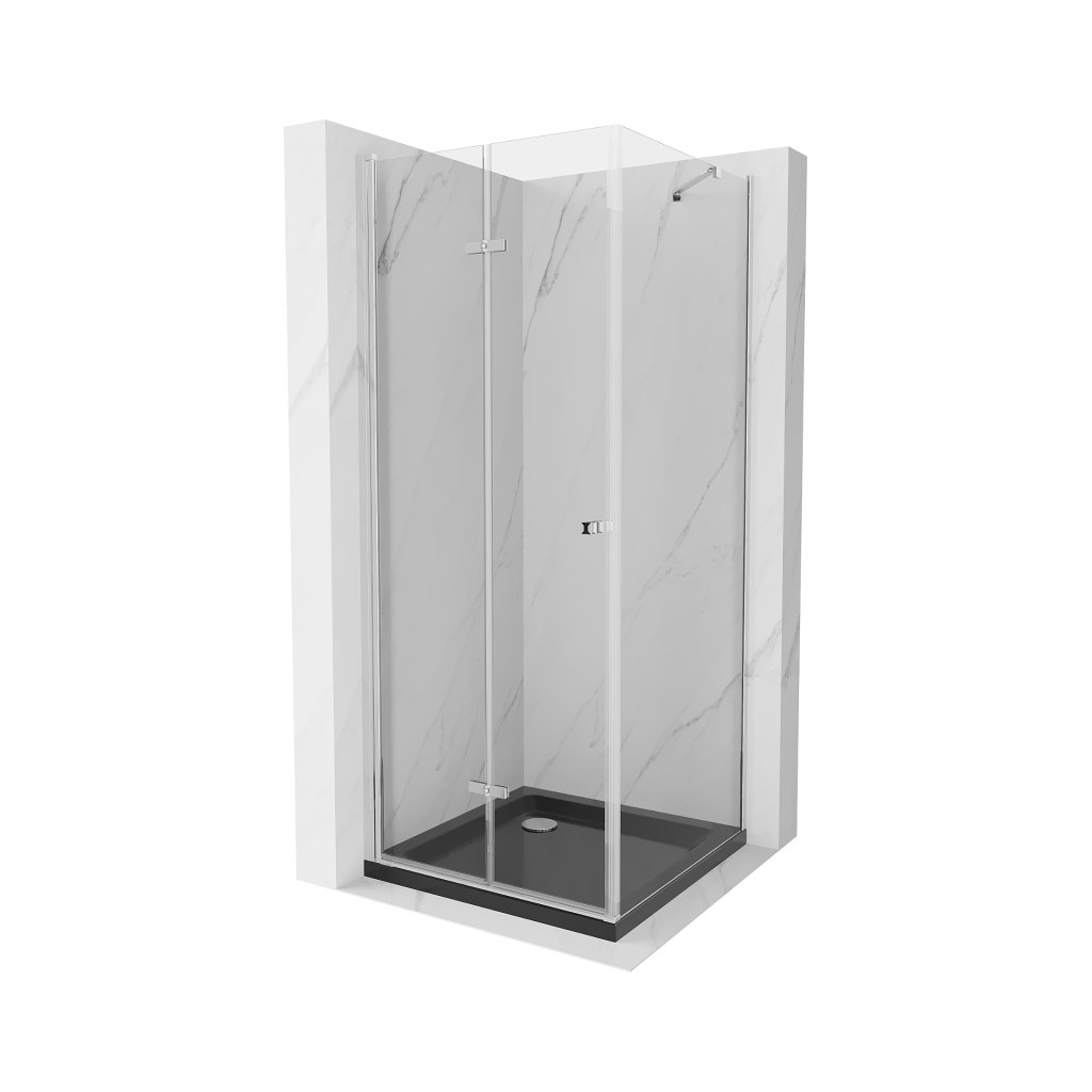 Mexen Lima, zuhanykabin összecsukható ajtóval 80 (ajtó) x 80 (fal) cm, 6mm átlátszó üveg, króm profil + vékony zuhanytálca fekete + króm szifon, 856-080-080-01-00-4070