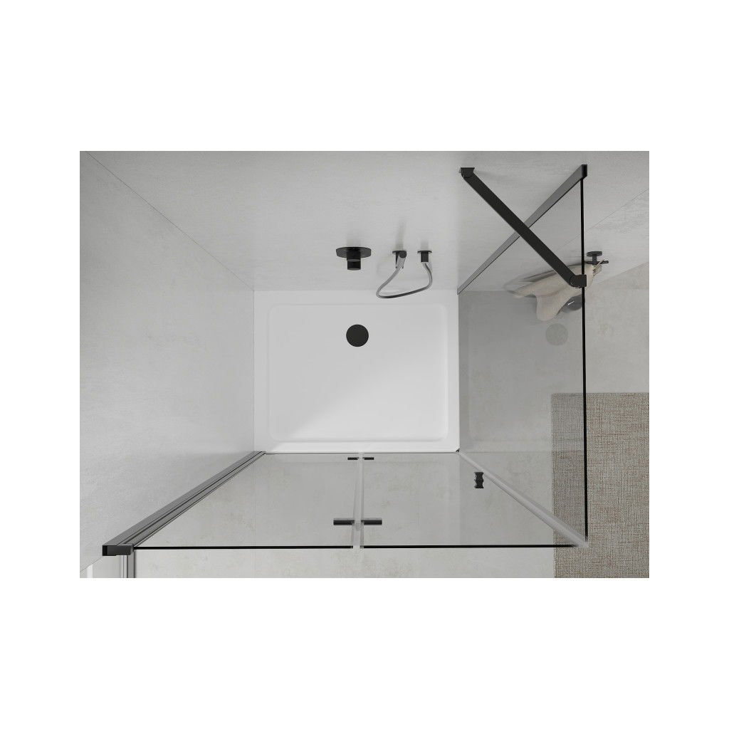 Mexen Lima, zuhanykabin összecsukható ajtóval 90 (ajtó) x 120 (fali) cm, 6mm átlátszó üveg, fekete profil + vékony fehér zuhanytálca fekete szifonnal, 856-090-120-70-00-4010B