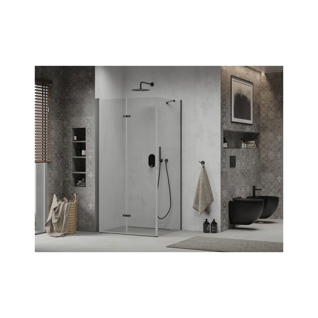 Kiváló választás minden fürdőszobába. Az elegáns zuhanykabin 6 mm vastag edzett üvegből készült, átlátszó kivitelben. Az alkalmazott üvegfelület-kezelés minden felhasználó számára maximális kényelmet biztosít. Ez a technológia egyedülálló lerakódásgátló tulajdonságokat garantál – csak öblítse le a felületet vízzel. A sarok fekete alumínium profilokba van felszerelve, és tömítéssel van ellátva, amely megakadályozza a víz kijutását a zuhanyon kívülre. A zuhanyajtó összecsukható (két üveg, minőségi zsanérokkal összekötve, ki- és behajtási lehetőséggel). A nyitáshoz megfelelő fém fogantyút használnak.