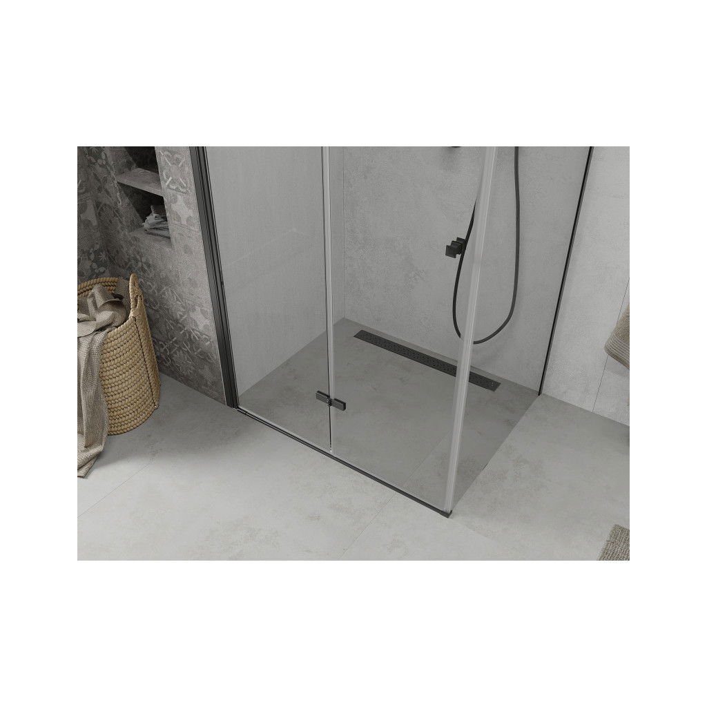 Kiváló választás minden fürdőszobába. Az elegáns zuhanykabin 6 mm vastag edzett üvegből készült, átlátszó kivitelben. Az alkalmazott üvegfelület-kezelés minden felhasználó számára maximális kényelmet biztosít. Ez a technológia egyedülálló lerakódásgátló tulajdonságokat garantál – csak öblítse le a felületet vízzel. A sarok fekete alumínium profilokba van felszerelve, és tömítéssel van ellátva, amely megakadályozza a víz kijutását a zuhanyon kívülre. A zuhanyajtó összecsukható (két üveg, minőségi zsanérokkal összekötve, ki- és behajtási lehetőséggel). A nyitáshoz megfelelő fém fogantyút használnak.