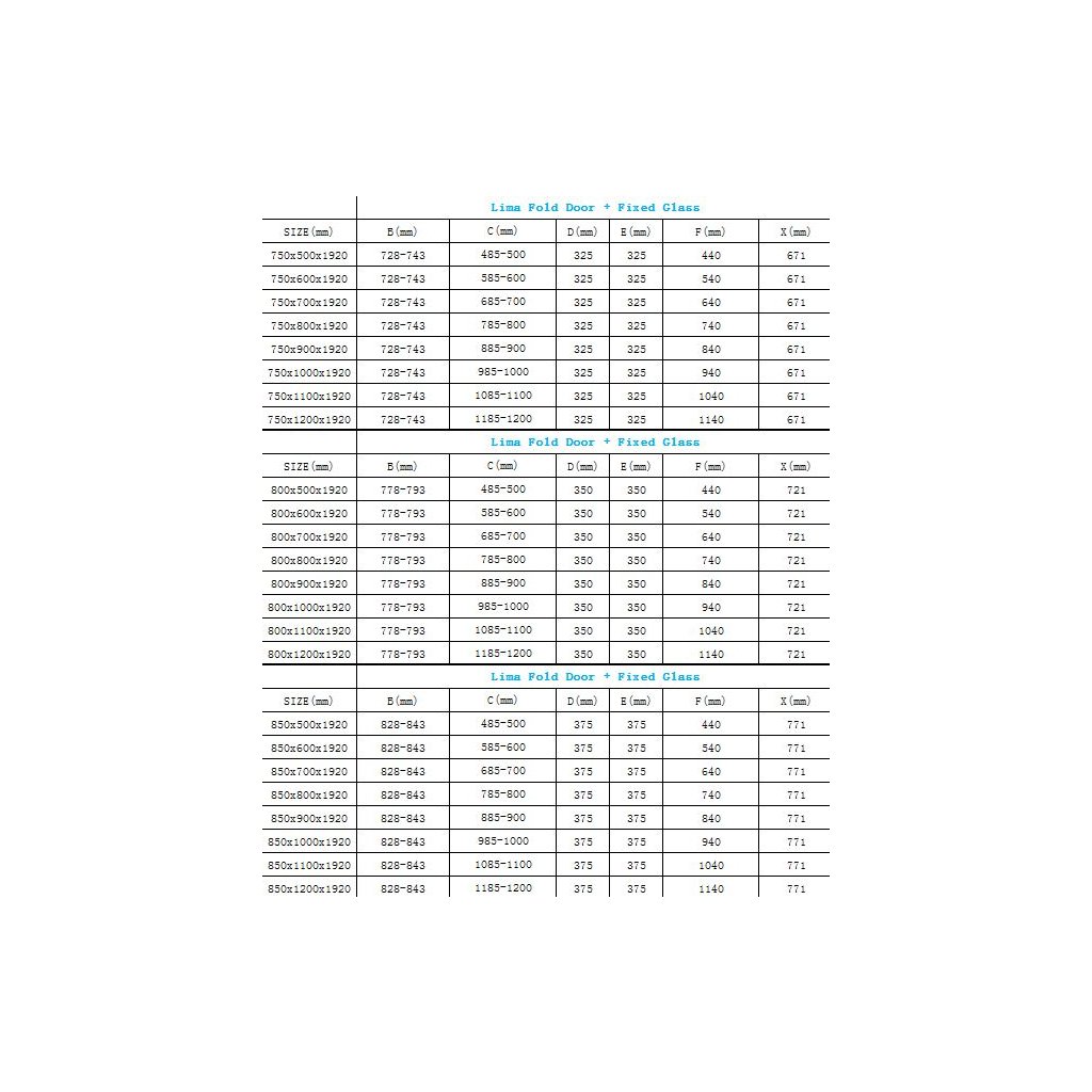 | Típus: | 1x összecsukható ajtó+ 1x fix üveg |