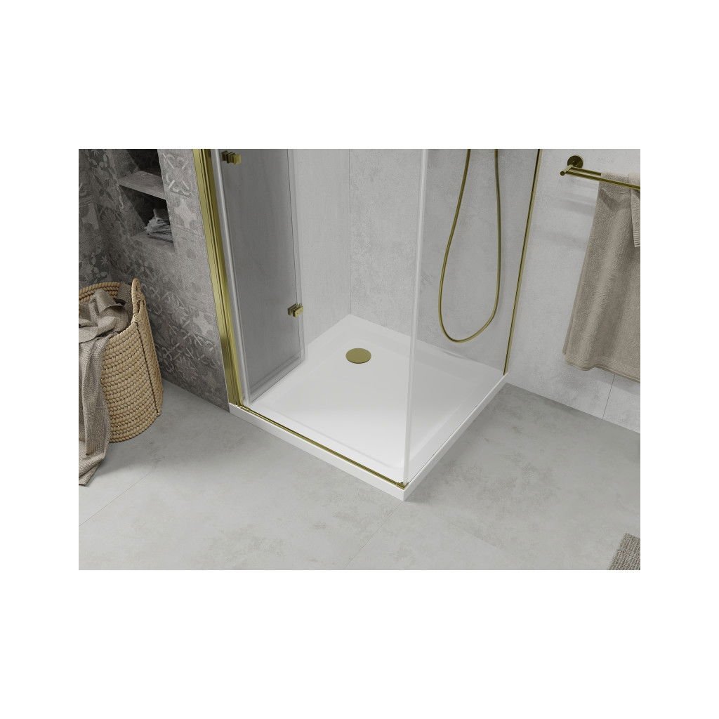 Összecsukható zuhanykabin Mexen Lima 80 x 80 cm, átlátszó, arany + lapos zuhanytálca-856-080-080-50-00-4010