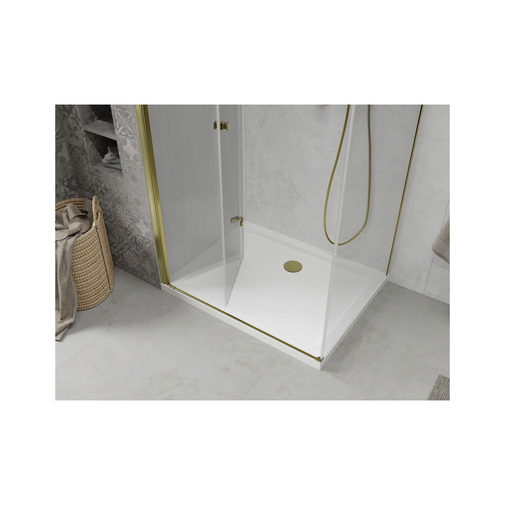 Összecsukható zuhanykabin Mexen Lima 80 x 90 cm, átlátszó, arany + lapos zuhanytálca-856-080-090-50-00-4010