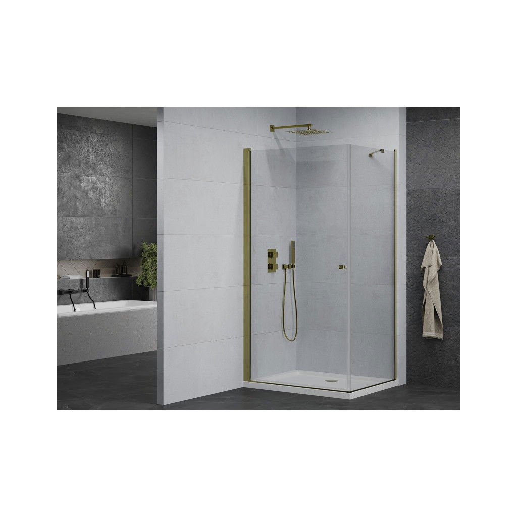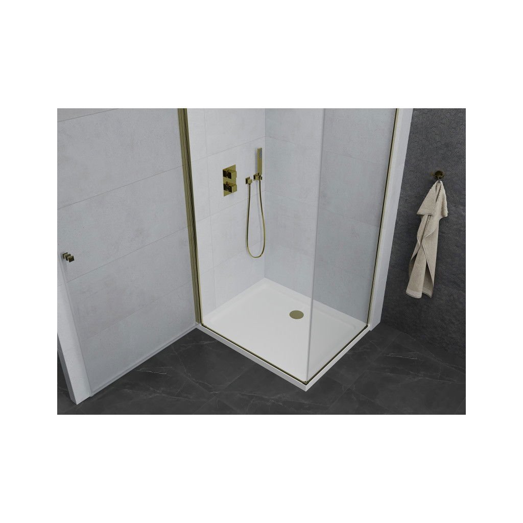 Mexen Lima zuhanykabin összecsukható ajtóval 90 x 100 cm, 6mm átlátszó üveg, arany profil + zuhanytálca, 852-090-100-50-00-4010