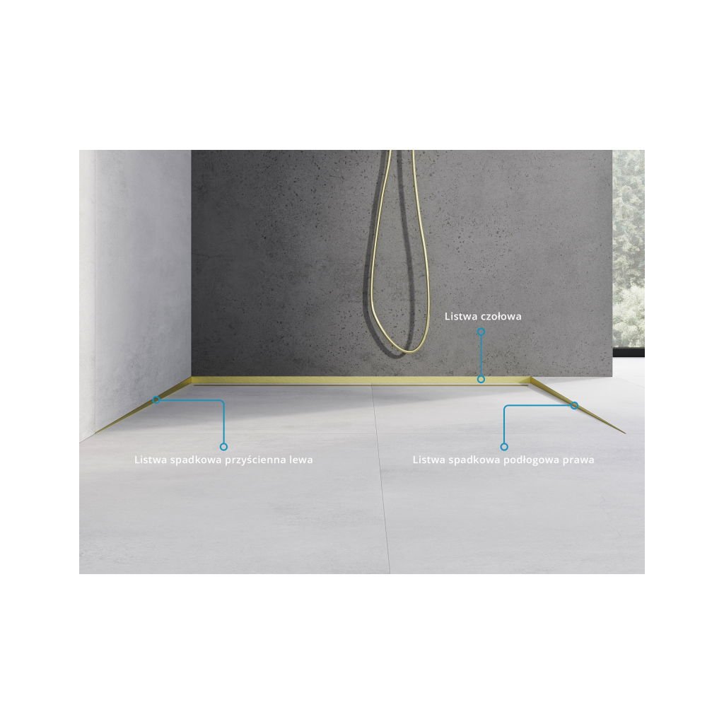 A szegélyléc oldalsó széle egyoldalú lejtést biztosít a lineáris lefolyó felé anélkül, hogy úgynevezett burokra lenne szükség.