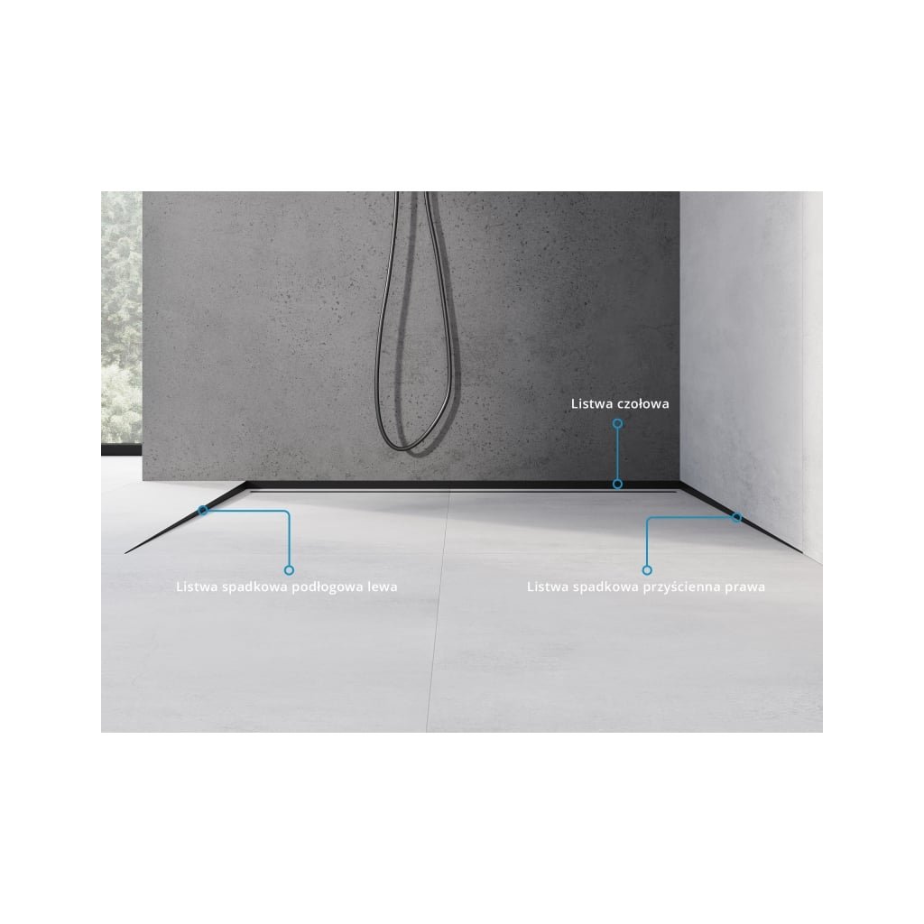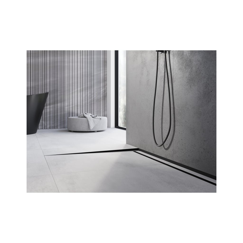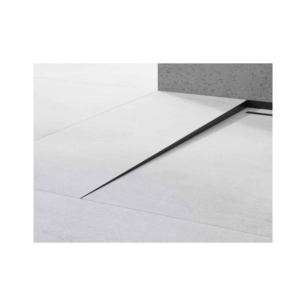 A szegélyléc oldalsó éle egyoldalú lejtést biztosít a lineáris lefolyóba anélkül, hogy úgynevezett burkot kellene létrehozni.