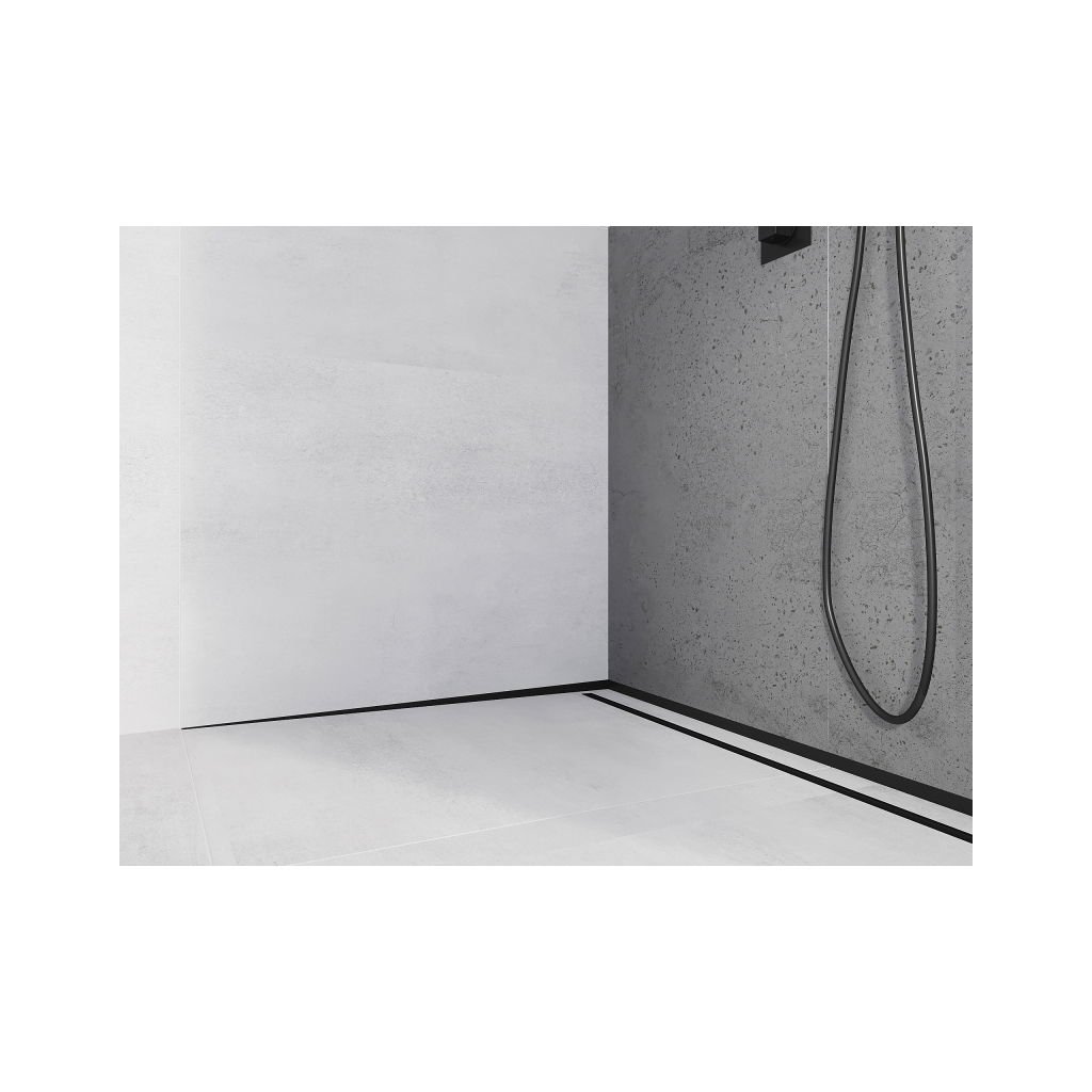 A szegélyléc oldalsó éle egyoldalú lejtést biztosít a lineáris lefolyó felé anélkül, hogy úgynevezett burkot kellene létrehozni.
